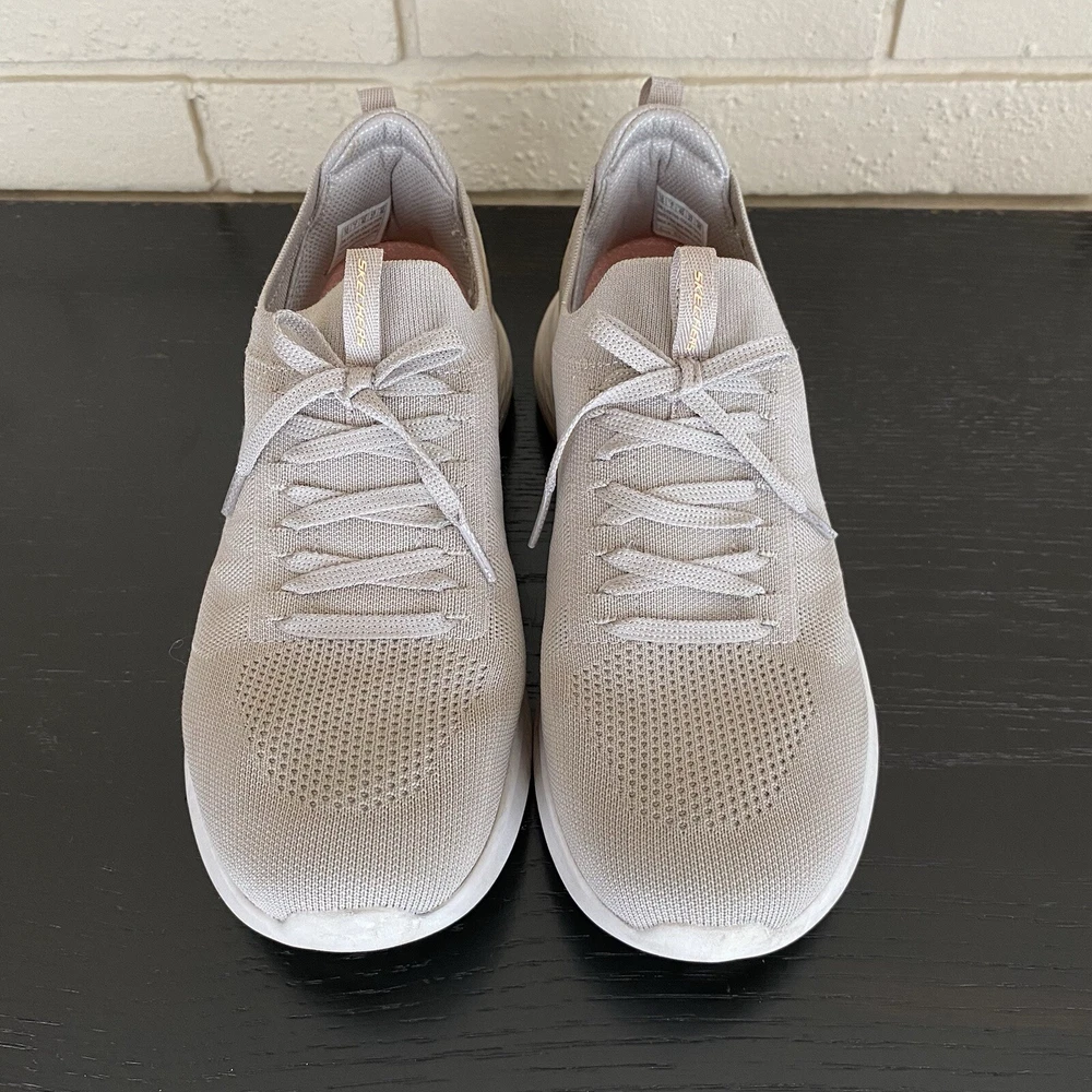 Upgrade your footwear collection with these Skechers Skech Lite Pro women's athletic shoes. Designed for comfort and performance, these sneakers feature arch support, cushioning, and a lightweight feel. The breathable, synthetic upper material and adjustable cap toe lace-up closure make them perfect for any occasion, whether it's for work, school, or casual wear. These beige sneakers have a solid pattern and are accented with the Skechers logo. They are suitable for gym training, walking, running, and jogging. The rubber outsole provides a sturdy grip, while the foam insole offers additional comfort. These low-top sneakers are perfect for the winter, summer, fall, and spring seasons.
