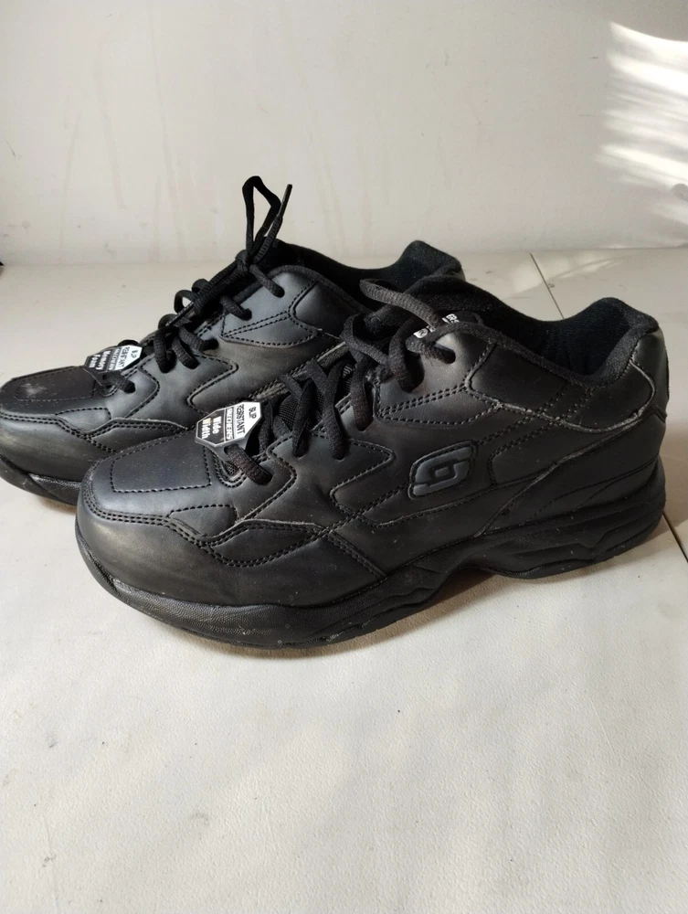 Solid good looking work shoes from Skechers. Check out my other listing from this estate for more shoes in this size range. I do combine shipping.