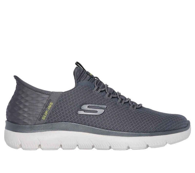 Step into easy-wearing comfort with Skechers Hands Free Slip-ins Summits - High Range. Along with our Exclusive Heel Pillow that holds your foot securely in place, this vegan style features a unique Skechers Slip-ins molded heel panel, a mesh upper with fixed laces, and a cushioned Skechers Air-Cooled Memory Foam insole.