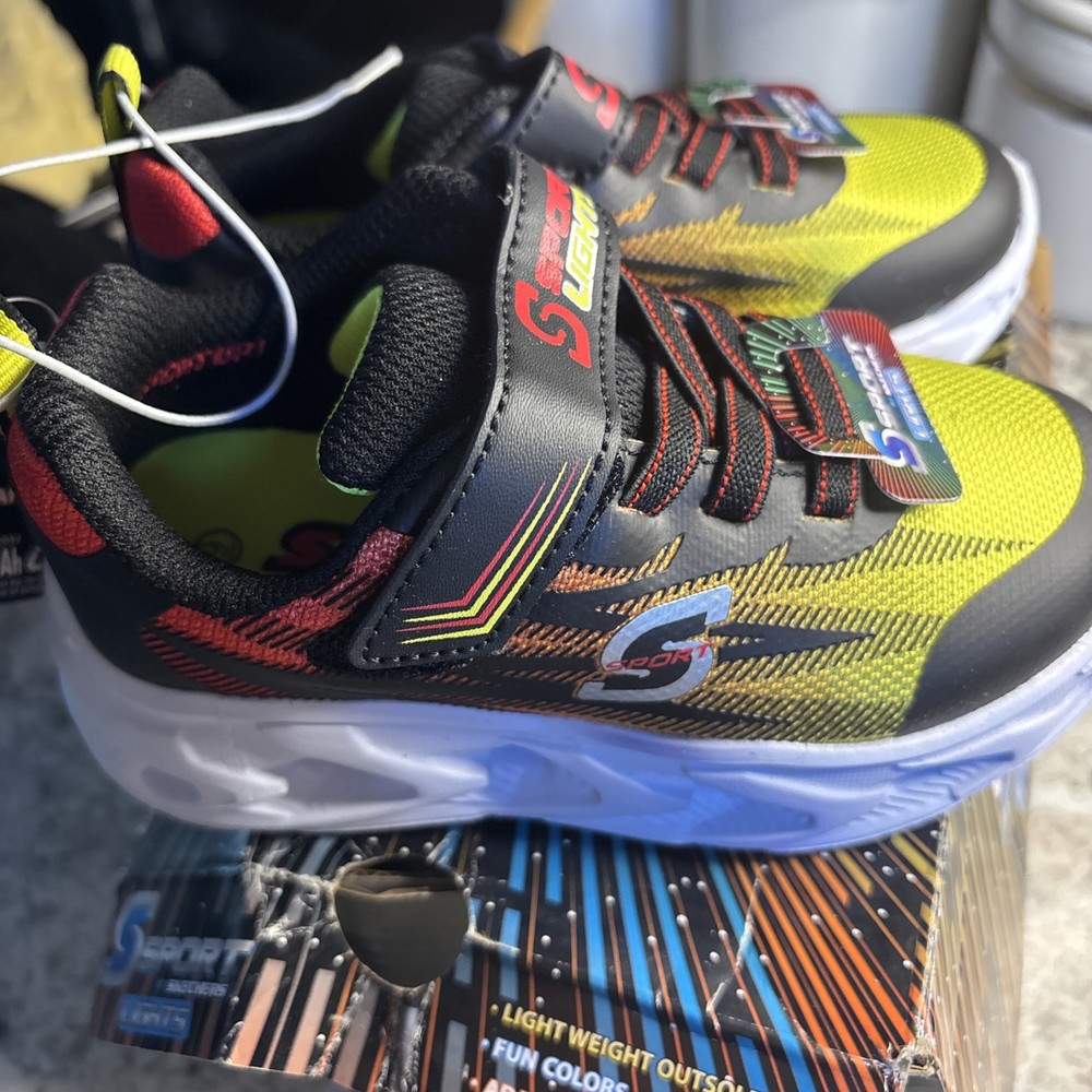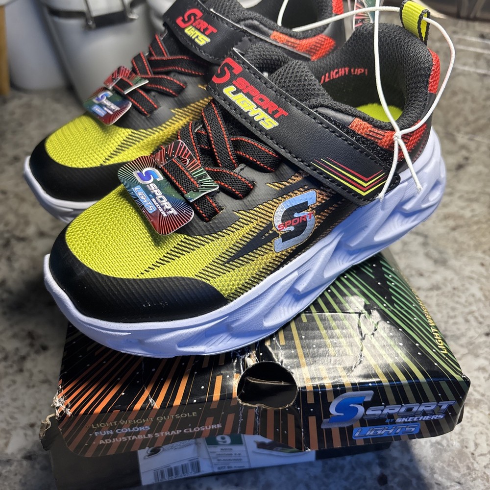 New in box box is a little bent. Toddler boy size 9 Skechers sport lights
