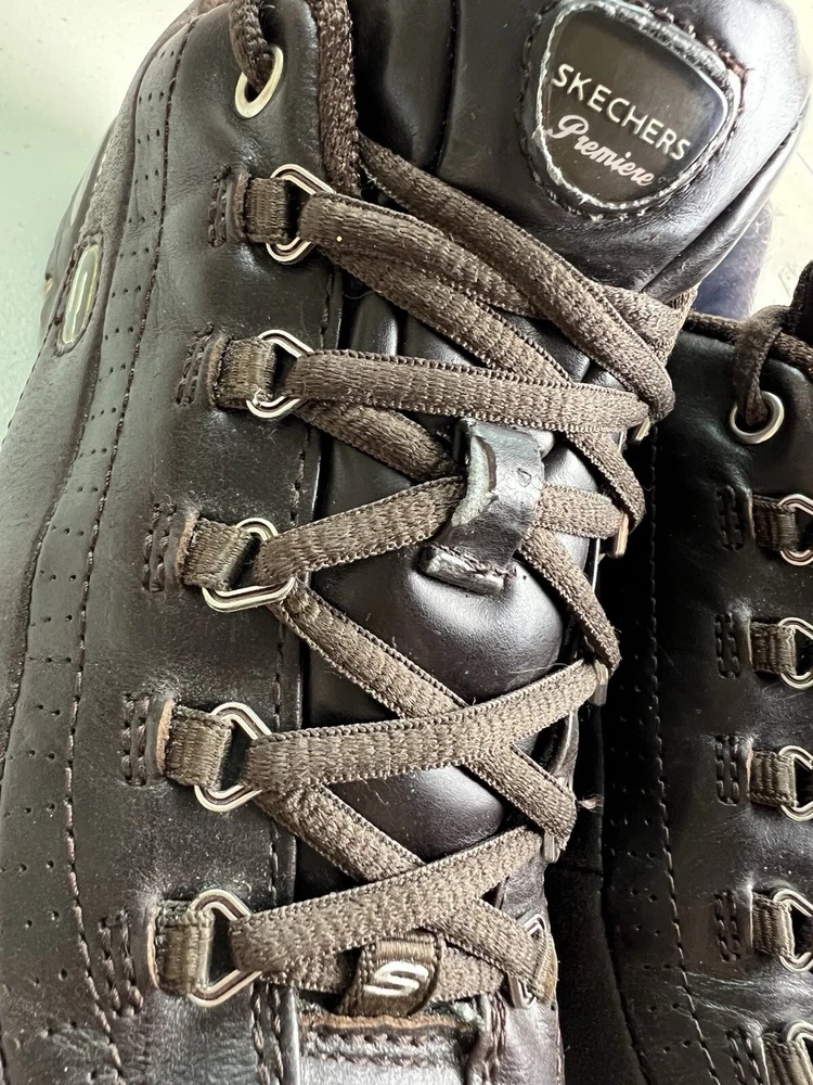 Skechers Sport Vintagee Size 7 Womens Leather Sneakers Good preowned condition- see wear on middle lace strap for both shoes. Otherwise normal light all over wear. See pics as further description. Y2K VTG Skechers