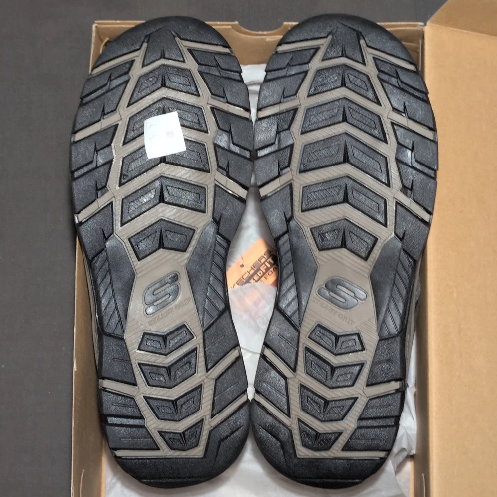 Model: Tresmen Garo UK Shoe Size: 12 Features: Adjustable Strap, Breathable, Comfort, Vegan EU Shoe Size: 47.5 Upper Material: Textile Accents: Logo Season: Fall, Spring, Summer, Winter Color: Brown Customized: No Style: Sandals Product Line: Skechers Relaxed Fit Handmade: No Theme: Outdoor Insole Material: Foam Vintage: No Country/Region of Manufacture: China Closure: Slip On Brand: SKECHERS Shoe Width: Standard Type: Sandal Character: Skechers Department: Men Occasion: Activewear, Casual, Christening, Party/Cocktail, Travel US Shoe Size: 13