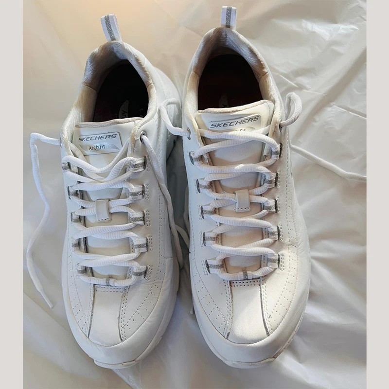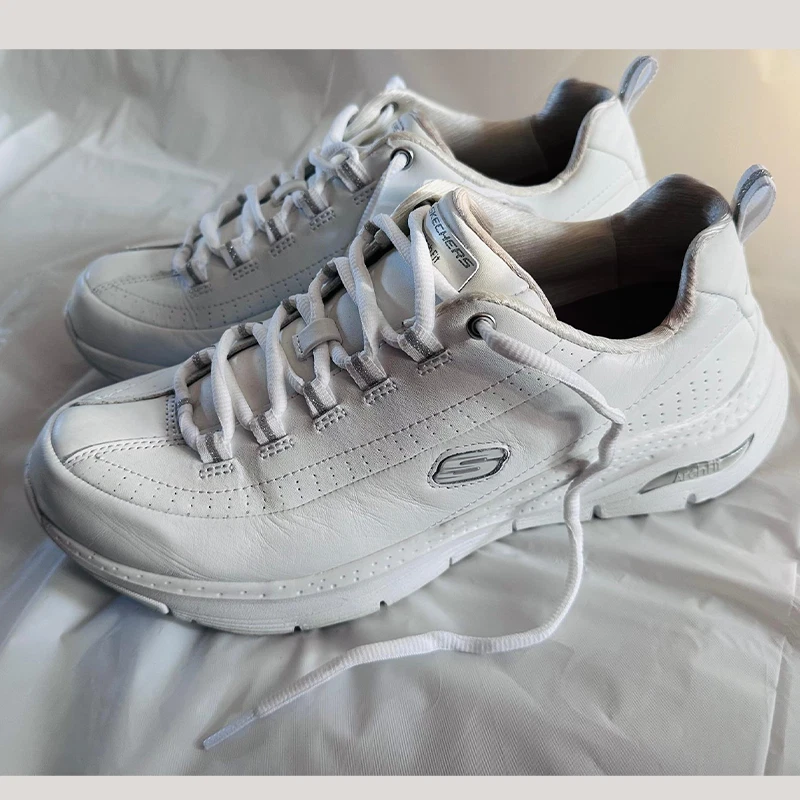 Skechers Women's Arch FIT, Size 9.5 - Preowned ✅Condition: Preowned, worn a few times but still in good condition • Leather and perforated smooth synthetic upper • Classic lace up design • Soft and lightweight fabric lining • Padded collar and tongue with achilles comfort notch • Removable Arch Fit design with anatomically designed support, Air-Cooled