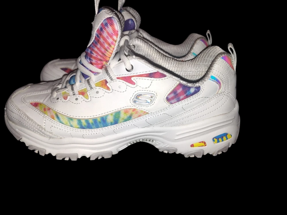 Elevate your athletic style with these Skechers Women's D'Lites Leather Lace Up Shoes in Dreamy Sky White. These fashion sneakers feature a low top shoe shaft style and lace-up closure for a secure fit. The upper material is made of premium quality leather and the insole is made of foam, providing comfort and support for walking, cross training, CrossFit, running, and jogging. These shoes have a stylish look with accents of the Skechers logo and a white and multi-color scheme. They are perfect for any season, whether it's winter, summer, fall, or spring. The shoes come in a US size 9.5 and UK size 6.5, with an EU size of 39.5. Get ready to step up your fitness game with these Skechers Memory Foam shoes.