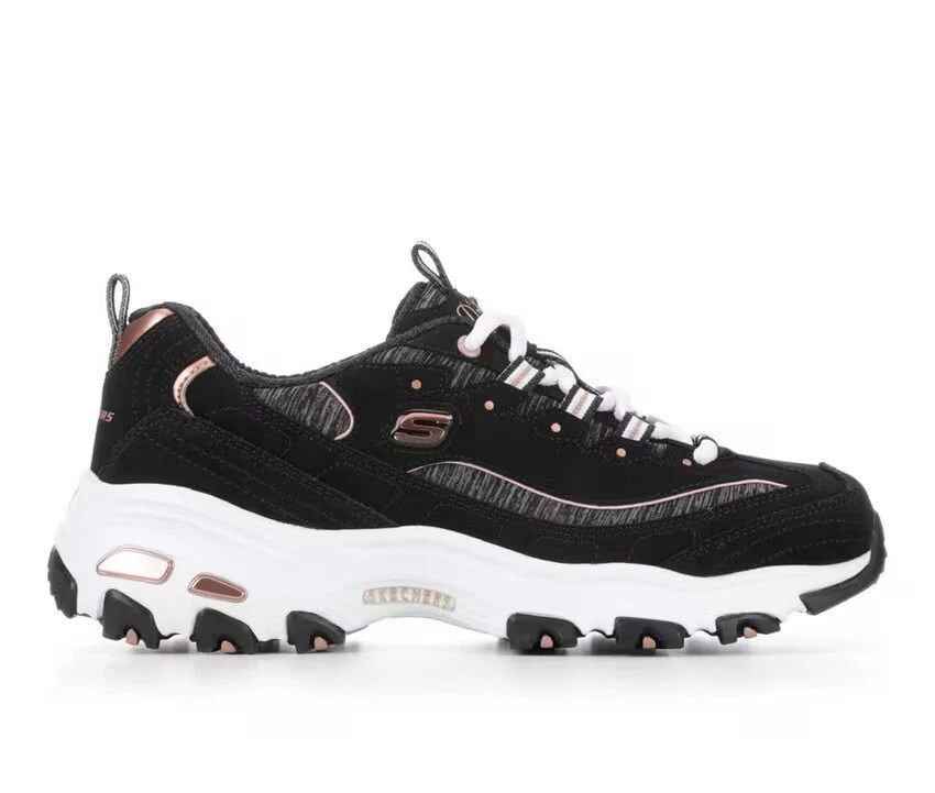 Rock the newest trend wearing the Skechers® Me Time 11936! These durable sneakers have stylish stud and rhinestone accents at the laces and tongue to add subtle sparkle into your day. The chunky outsoles create a fun retro 90s vibe, while providing solid comfort with an Air-Cooled Memory Foam™ cushioned comfort insole, lightweight shock absorbing supportive midsole, and a flexible rubber traction outsole. Add the Skechers® Me Time 11936 to your cart today and start walking in stylish comfort! Durable upper Lace-up sporty athletic training and walking sneaker design Air-Cooled Memory Foam™ cushioned comfort insole Lightweight shock absorbing supportive midsole Flexible rubber traction outsole Soft fabric shoe lining Padded collar and tongue Fabric strap at heel and tongue Fun sparkle accents Skechers® branding details