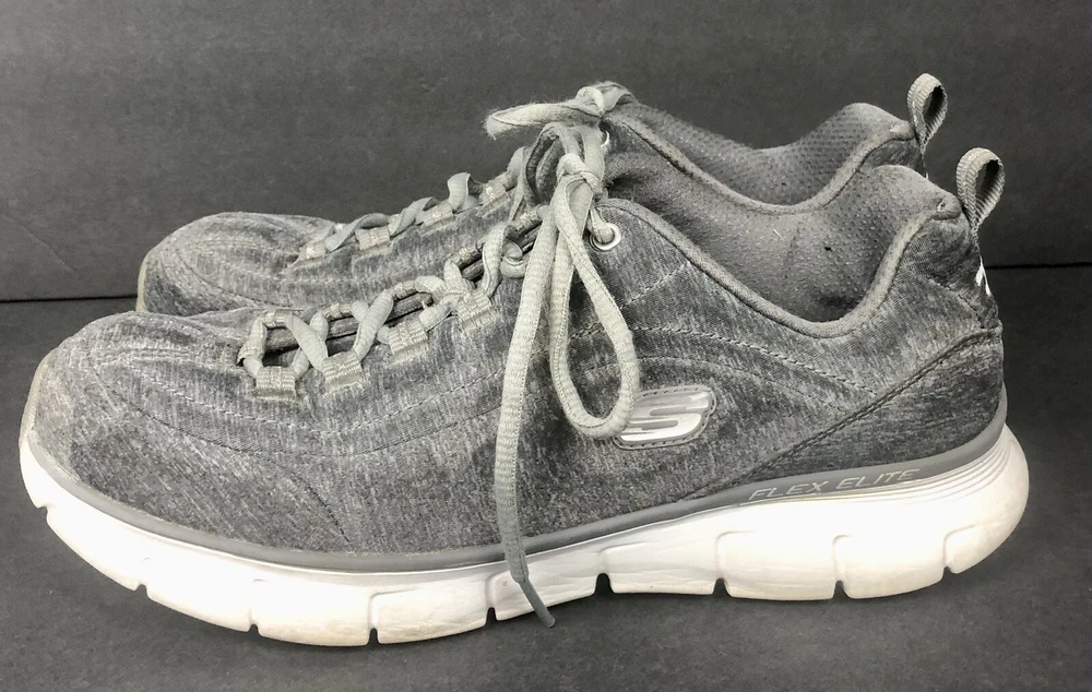 Elevate your running game with these stylish Skechers Elite Flex 13262W Gray Sneakers. Designed for women with a US shoe size of 9.5 and a UK shoe size of 6.5, these athletic shoes are perfect for all seasons and occasions. The closure is lace-up, and the shoe shaft style is low-top, providing comfort and breathability with a blended fabric that includes synthetic upper material and fabric lining material. The outsole material is made of rubber, and the shoe width is W, making these shoes perfect for running and jogging. The sneakers feature an accent logo and sporty theme, and they are not vintage or signed. The Skechers Elite product line offers a great performance, and these shoes are no exception. Achieve your running goals today with these Skechers Elite Flex 13262W Gray Sneakers.