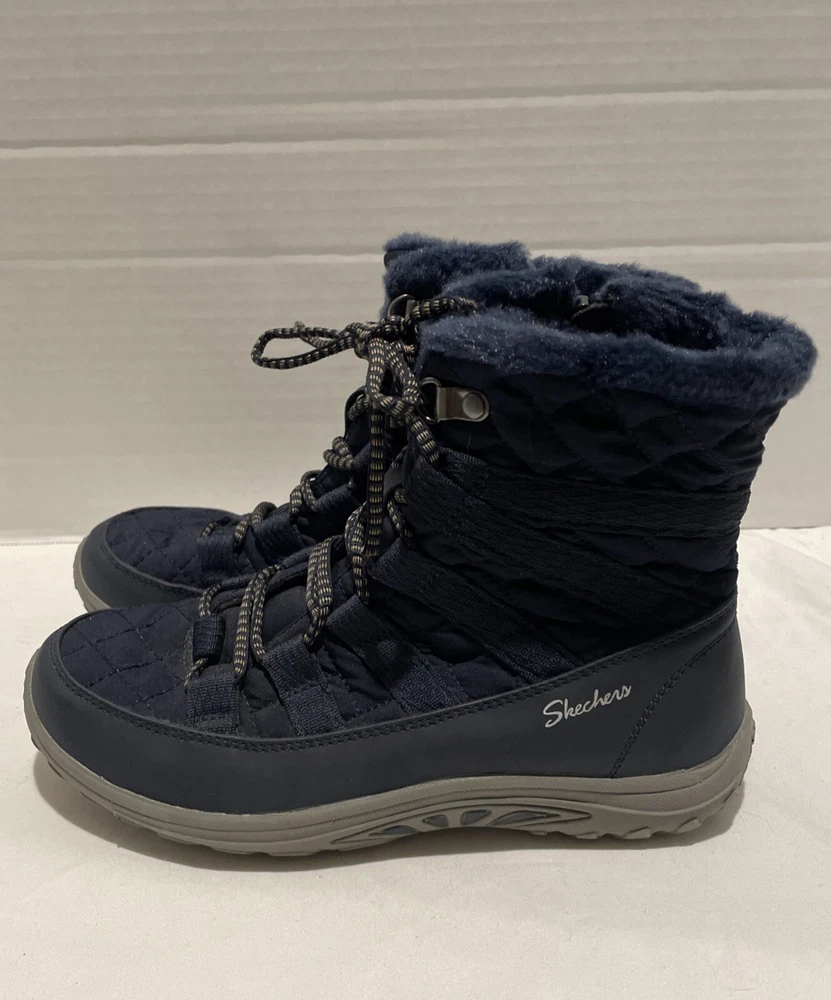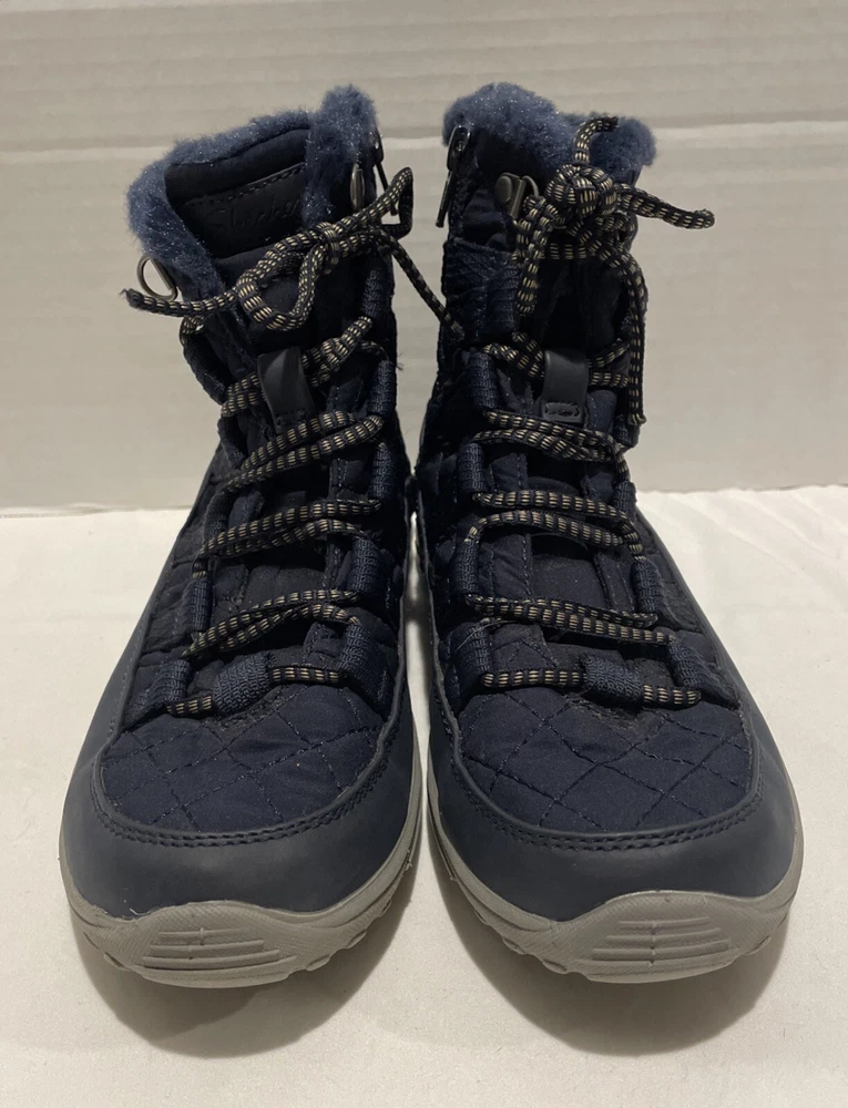 Step out in style and comfort with these Skechers Women's Quilted Side-Zip Air Cooled Memory Foam Boots in Blue. These boots feature a mid-calf shaft style and a flat heel height, making them perfect for outdoor and casual occasions. The side zip and lace-up closure provide a secure fit, while the rubber outsole material offers durability and traction. The boots are made of nylon upper material and faux fur lining material, with a foam insole material for added comfort. They also come with features like relaxed fit, cushioning, lightweight design, and air cooling. The Skechers Reggae Fest Moro Rock model is perfect for women who want to add a touch of style to their wardrobe.