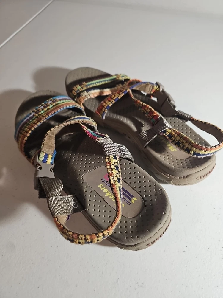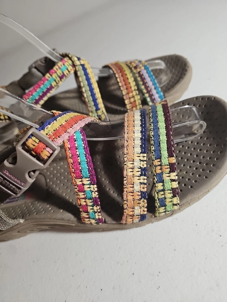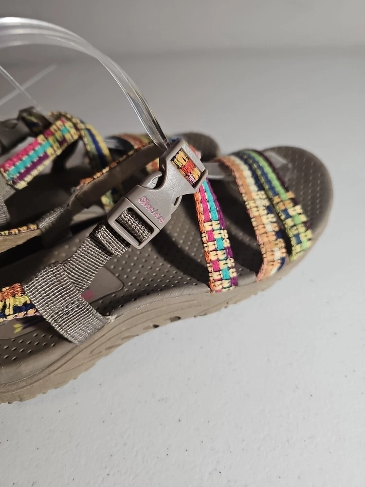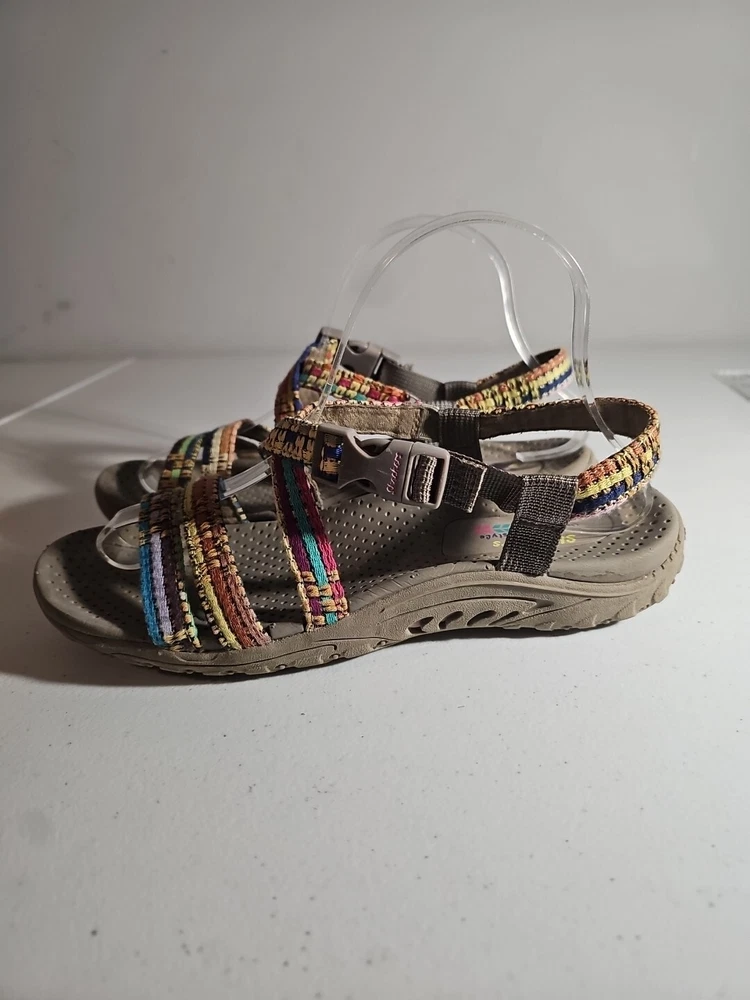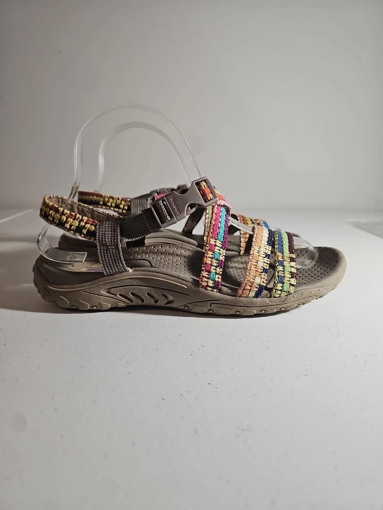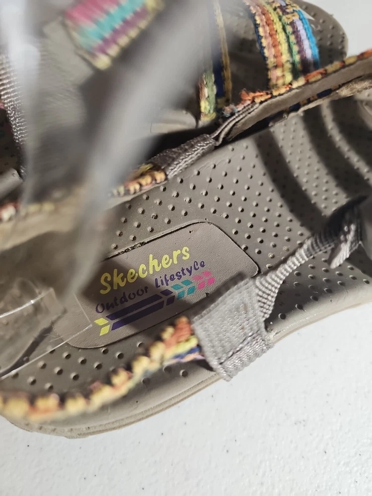 The Skechers Women's Reggae-Sew Me Sandal in Taupe Multi is a comfortable and stylish choice for casual wear. Featuring a woven fabric upper with stitching accents, this strappy sandal has a buckle/strap closure for an adjustable fit. The flat heel style and cushioned footbed offer all-day comfort, making it ideal for everyday activities. The sandal is part of the Skechers Reggae product line and is designed for women in size 7 US (37 EU) with a medium width. Comes from my clean, non-smoking home to yours with love;). These do show some signs of wear, but they have ALOT of wear and adventure left in them;) I will ship this using ground advantage. If you would like to upgrade to Priority shipping, please let me know and I will change the setting to allow you to upgrade. I do my best to do next business day shipping. I dont ship on Saturdays, sorry;). Thank you for looking;).
