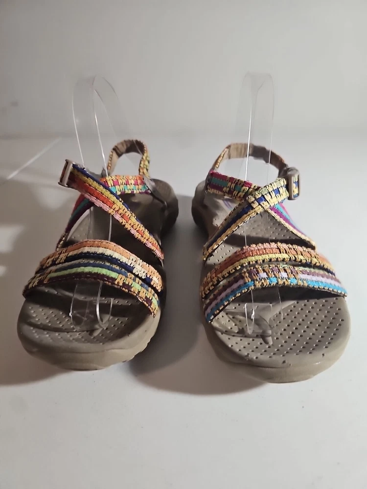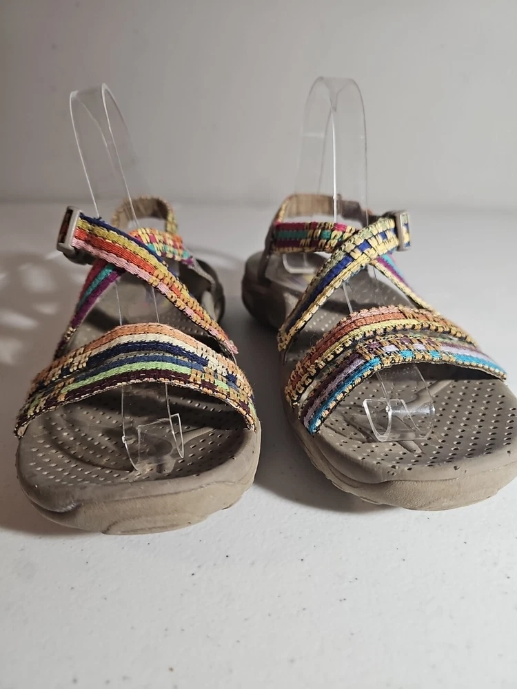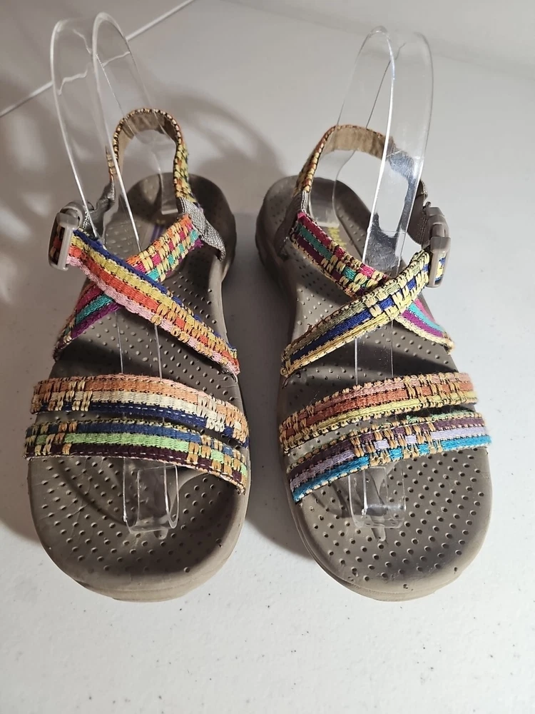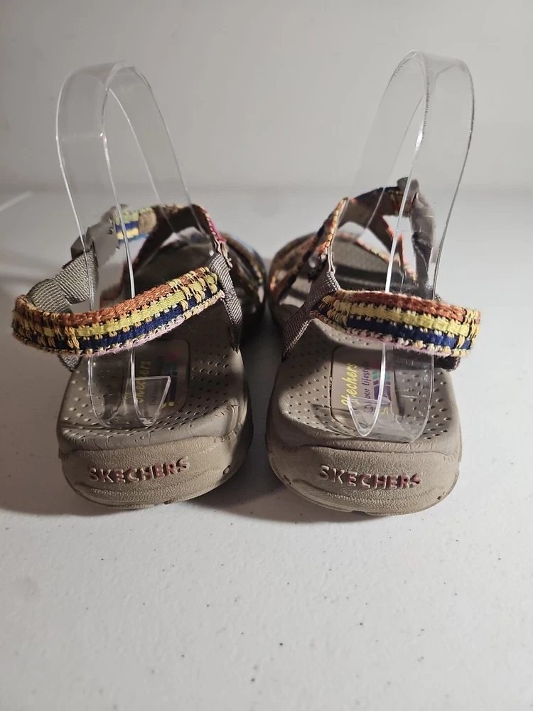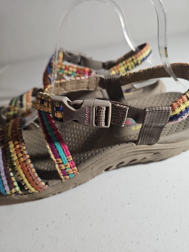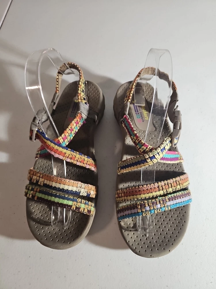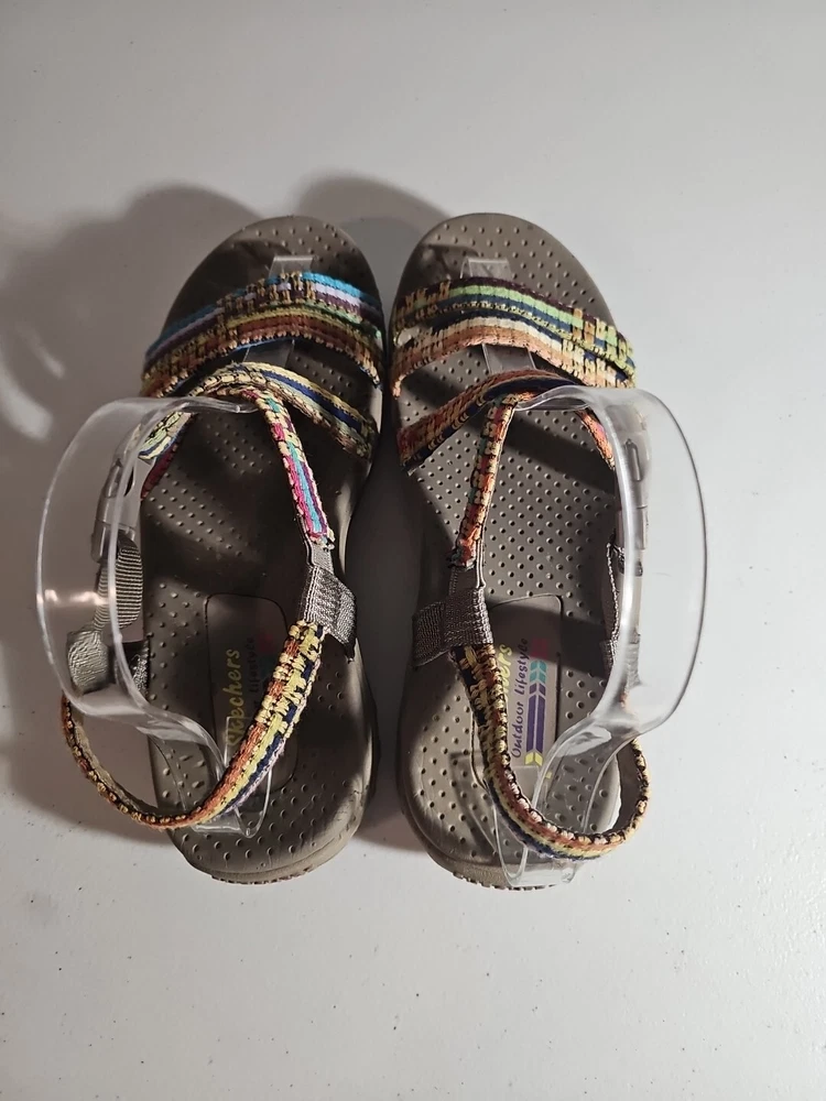 The Skechers Women's Reggae-Sew Me Sandal in Taupe Multi is a comfortable and stylish choice for casual wear. Featuring a woven fabric upper with stitching accents, this strappy sandal has a buckle/strap closure for an adjustable fit. The flat heel style and cushioned footbed offer all-day comfort, making it ideal for everyday activities. The sandal is part of the Skechers Reggae product line and is designed for women in size 7 US (37 EU) with a medium width. Comes from my clean, non-smoking home to yours with love;). These do show some signs of wear, but they have ALOT of wear and adventure left in them;) I will ship this using ground advantage. If you would like to upgrade to Priority shipping, please let me know and I will change the setting to allow you to upgrade. I do my best to do next business day shipping. I dont ship on Saturdays, sorry;). Thank you for looking;).