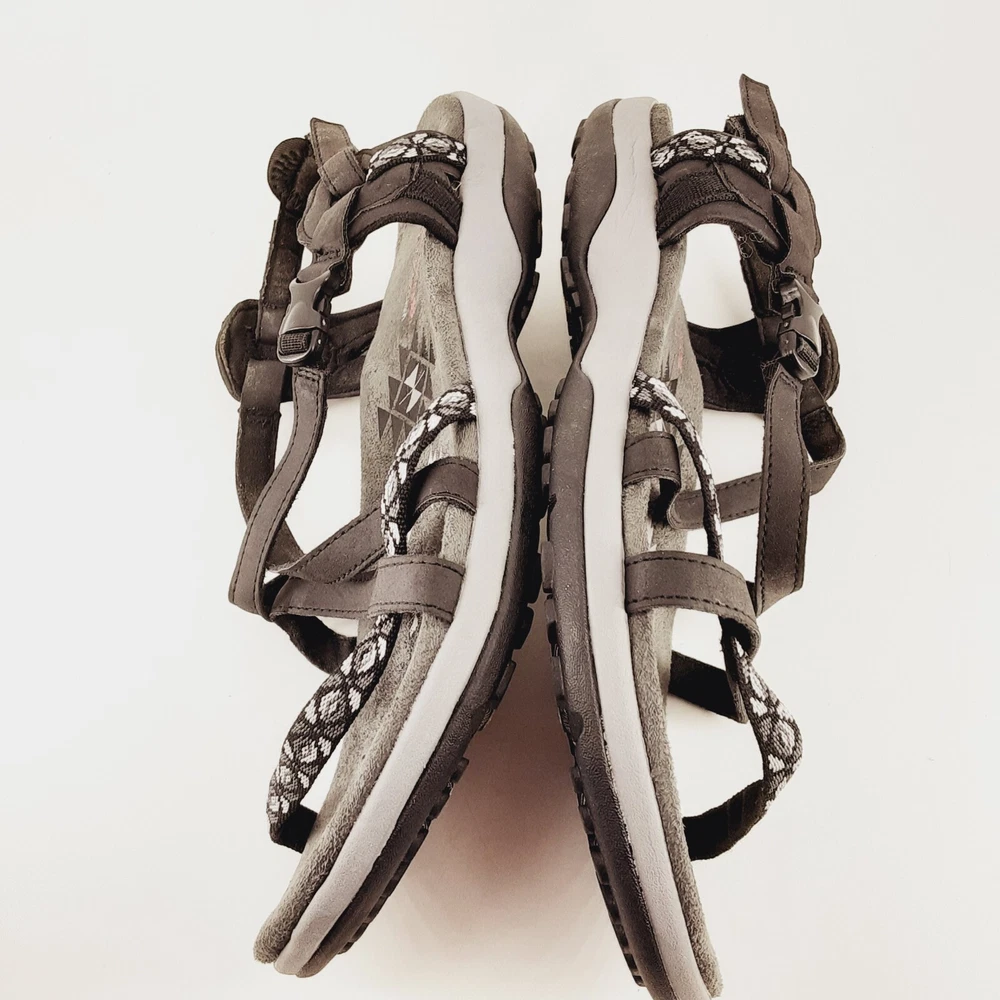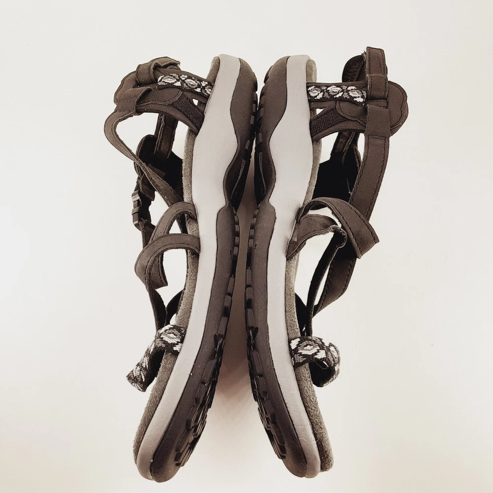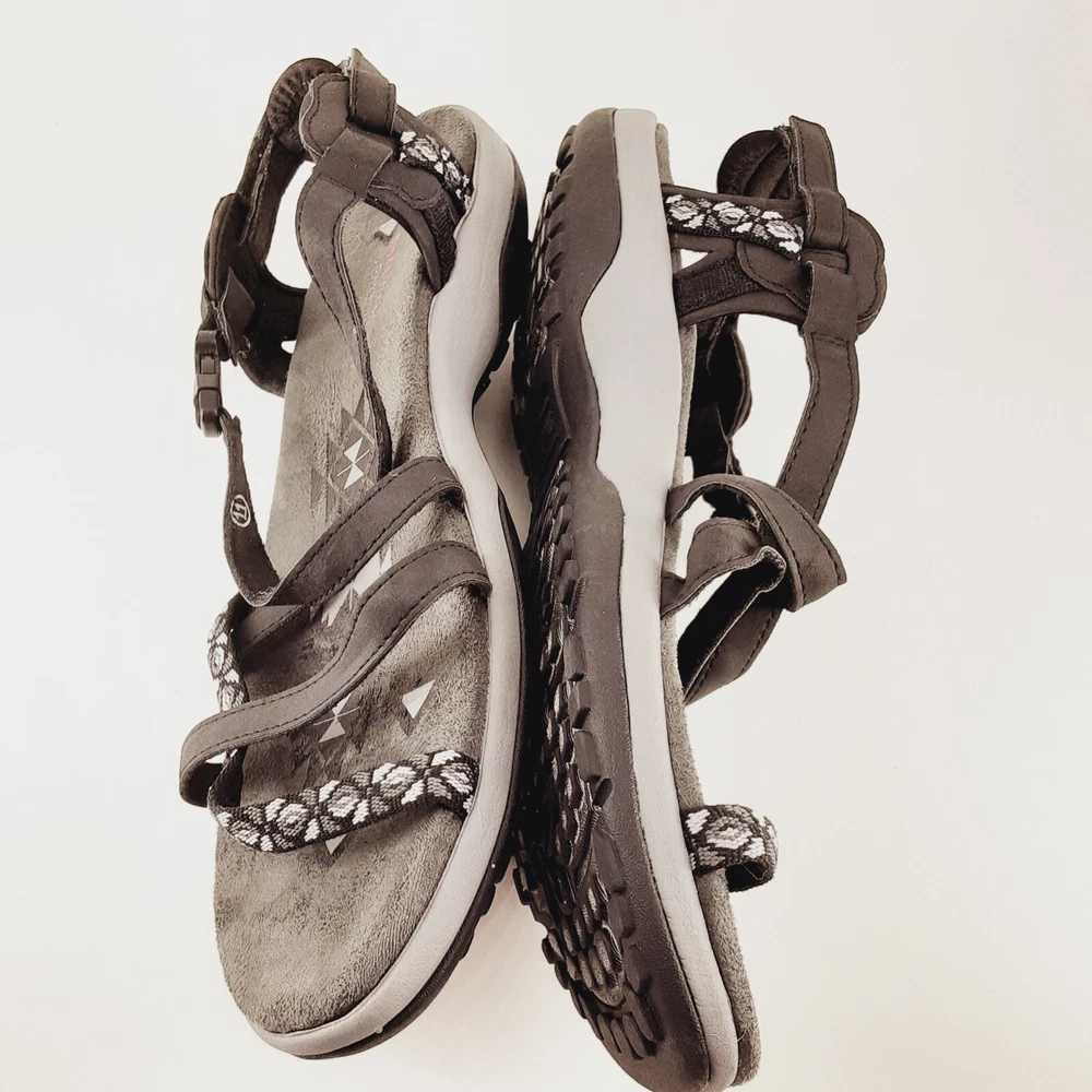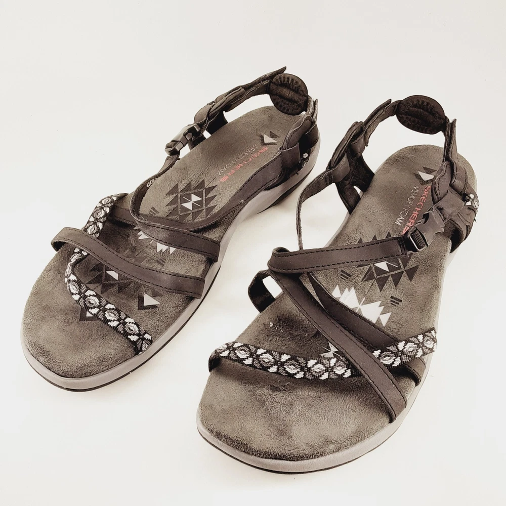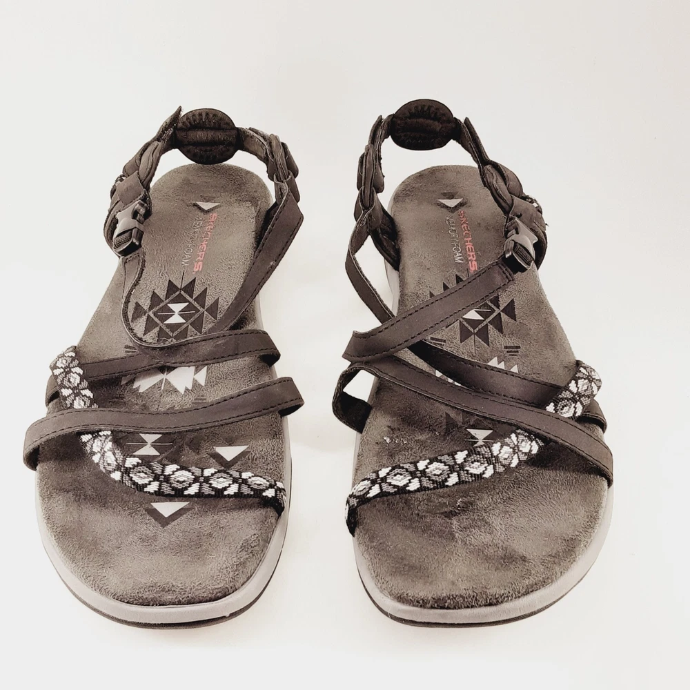 WE APPRECIATE OUR CUSTOMERS THANK YOU FOR SHOPPING WITH US!! Skechers Womens Sandals US 11 Reggae Slim Vacay Strappy Mem Foam Black Gray Elevate your style with these Skechers Reggae sandals in black and gray. The slip-on strappy design is perfect for any occasion, whether you're running errands or going out with friends. The memory foam insole provides ultimate comfort, while the synthetic upper material ensures durability. These sandals are perfect for women who want to add a touch of sophistication to their wardrobe. The geometric pattern adds a unique touch to the overall design, and the Skechers brand name guarantees quality. Get ready to step out in style with these Skechers Reggae sandals. *Please look at pictures as they are part of the description/details. *Good Preowned Condition *Thanks for looking! Please remember items listed as vintage or used will typically show age appropriate wear. I have provided lots of photos for you to see the general condition of each item. If you would like any further photos or information, please contact me and I will be happy to try and help. I do my best to describe items accurately. Pictures are considered part of the description. Cameras and/or computers can sometimes slightly alter colors. Any measurements should be considered approximate. If you need an exact measurement, please ask. Terms and Conditions : Once a purchase has been made, it is legally binding contract. Payments: Payment is due when purchase is made, Thank you for your prompt payment. *If payment is not received within 4 days of purchase, then a Non-Paying Buyer Dispute will be filed, and eBay may mark it against your account. SHIPPING: We ship daily (Mon-Fri not to include holidays) and will ship within two business day of receiving payment! I do accept returns if you are unhappy with your item for any reason. I ask that it be returned in the original condition you received it in. I take pride in shipping items carefully. However, if an item arrives damaged, please contact me immediately. All shipping materials (box, poly bag, bubble wrap, paper, etc.) must be kept, as well as it is necessary to take 7 pictures to document exterior damage of the box, as well as the interior damage of the item(s) that was purchased. This documentation is required to file a damage claim with both USPS and UPS. Upon Receiving : If you are satisfied with your product(s), please leave some positive feedback. *We love hearing that you have received your purchase(s), and are content, delighted, and untroubled. *Once you receive your purchase(s), please inspect them for any damage during transit. Report any damage within 24hrs via eBay e-mail. Return Policy : You may return unworn, unwashed merchandise in its original condition with all tags attached. If you bought a brand-new item, it MUST be returned brand new (Sealed and Any returns MUST be sent back to us complete and in the same condition as delivered to you Unopened). Items must be in new or original condition (free of odor, markings etc.) and ready for resale. Any serial or product numbers must match the purchased item for refund. PLEASE NOTE that shipping will not be refunded . Upon time of purchase, you are agreeing to this return policy. CHECKOUT: Please make sure that your address on file with eBay is complete and correct as we must use the address you have with eBay. *If you have any questions about your purchase, delivery, or a possible product return; Please contact us immediately and directly through your eBay accounts message center! *We are Eco-Friendly, leaving the lightest possible impact on our environment! Whenever possible we will reuse packing material to aid with our Eco goals. Customer service and feedback: If you have any questions about your purchase, delivery, or a possible product return; Please contact us immediately and directly through your eBay account message center! Your satisfaction is our top priority! Our goal is to earn your 5-star 100% feedback. Thank You for buying from us!