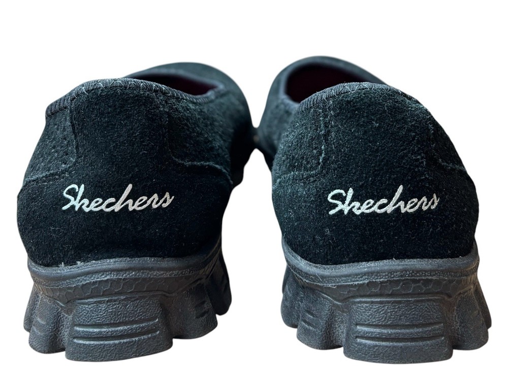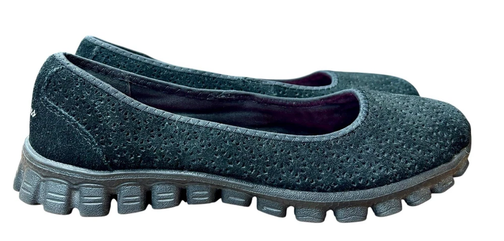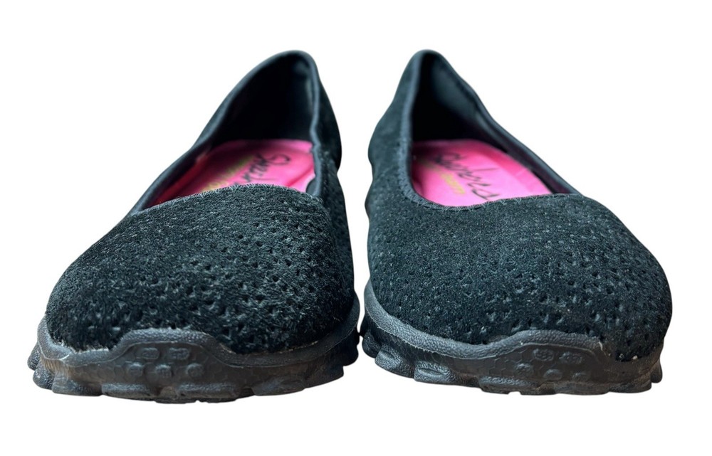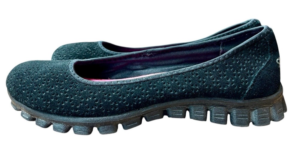 The Skechers Women's Size 6.5 Sport Casual Slip On Flats are perfect for women looking for both style and comfort in their footwear. With a memory foam insole and slip on closure, these black flats are easy to wear and provide all-day comfort. The round toe shape and solid pattern make them versatile for casual occasions, while the synthetic outsole offers durability. Whether you're walking, running errands, or just lounging around, these Skechers flats are a great addition to your wardrobe.