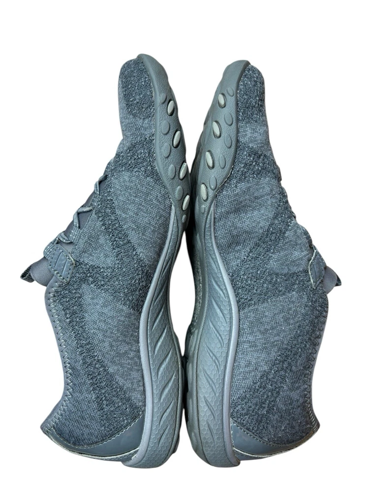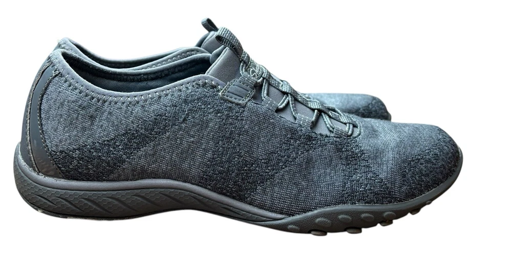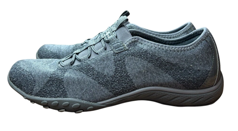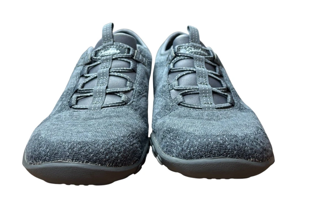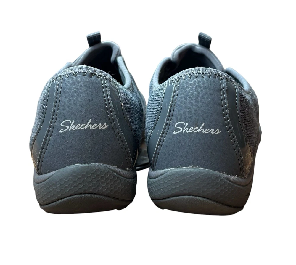 These Skechers Women's Slip-On Sneakers in size 7 feature a stylish gray color with a solid pattern and the brand's signature logo accents. They are designed for casual and activewear occasions, with a comfortable Memory Foam insole and Relaxed Air Cool technology for long-lasting comfort. The slip-on style and standard shoe width make them easy to wear, while the rubber outsole provides traction for walking activities. Ideal for women looking for a versatile and trendy athletic shoe option.