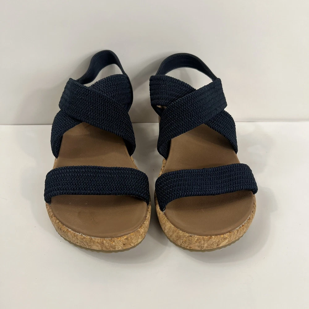 Skechers Women's Arch Fit Beverlee Love Stays Navy Wedge Sandals Size:6 195H Shipping is calculated by eBay based on weight and size of package, which sometimes seems high, even to the seller. Therefore, sellers shipping discount is shared with the buyer making it as low as possible. We use recycled shipping supplies, when possible. Due to new USPS policies, your item may take longer than USPS/eBay promises. Orders will be processed within stated time by seller. Security measures are taken to protect seller from fraudulent activity.