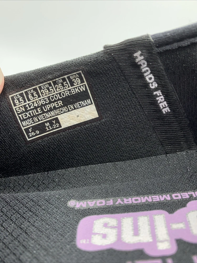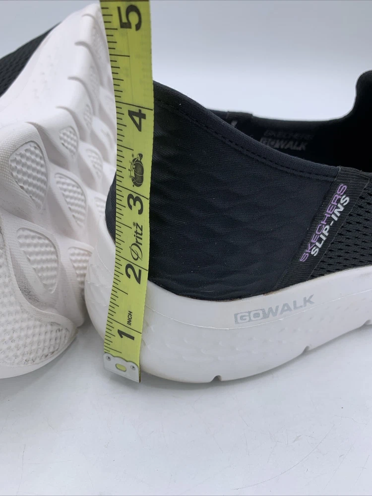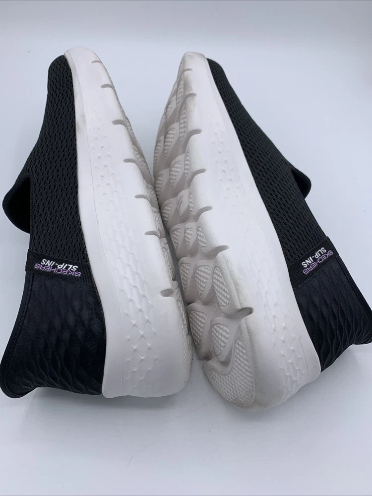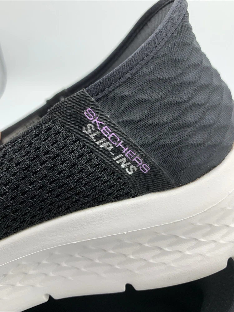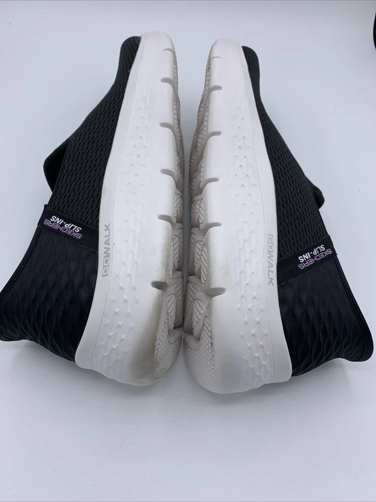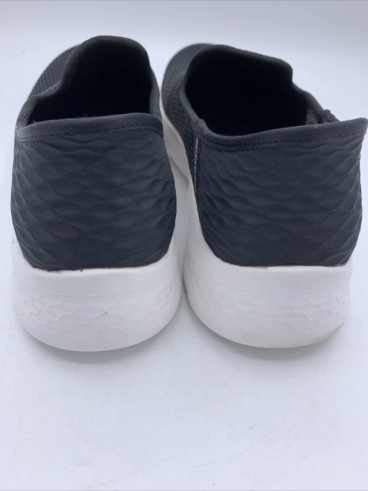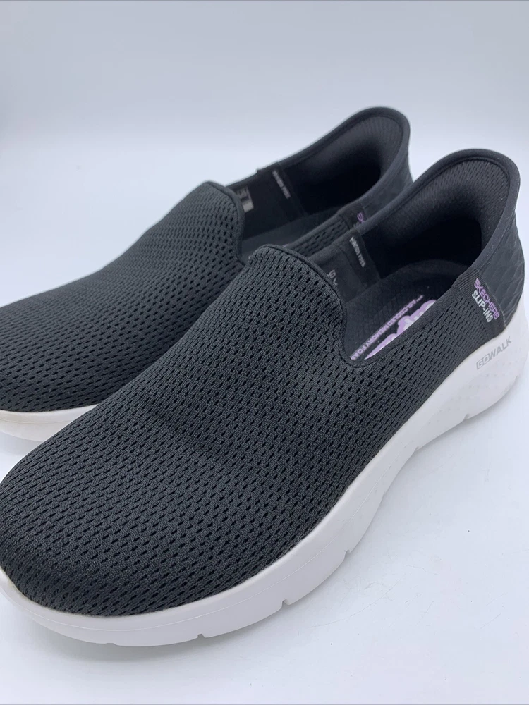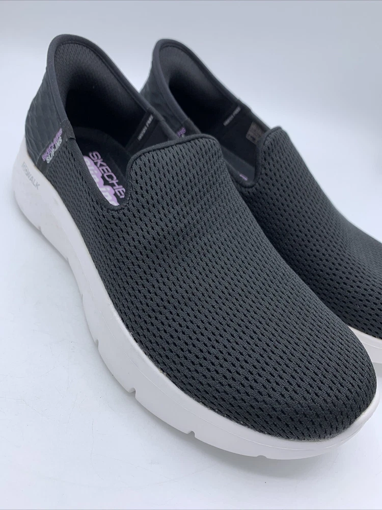 Elevate your casual style with these Skechers GO Walk Flex Relish slip-on shoes. The black mesh upper material is accented with a logo and a solid pattern. The round toe shape and low top shoe shaft style provide a comfortable fit for walking, while the rubber outsole ensures durability. These shoes are perfect for any occasion, whether it's for travel, activewear, casual outings, or workwear. The cushioned memory foam insole and lightweight design, make them a reliable choice for comfort. These Skechers GO Walk Flex Relish slip-on shoes are available in size 9.5. Very good pre owned condition.