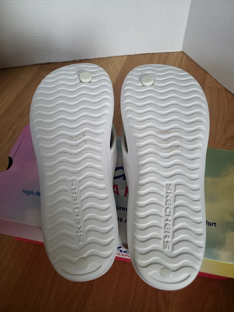 Skechers with Yoga Foam sandals Size 9 White with rainbow tie dye inner soles New in box See photos for details Thanks for looking!