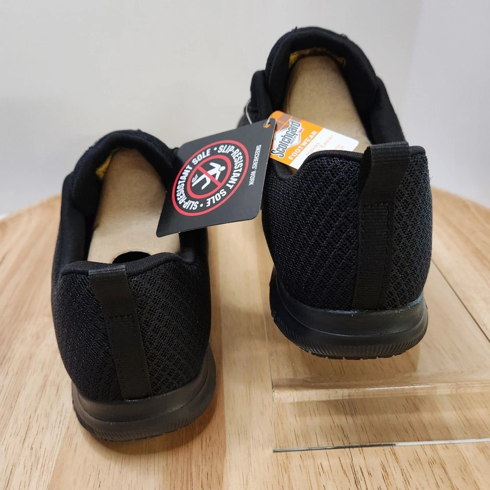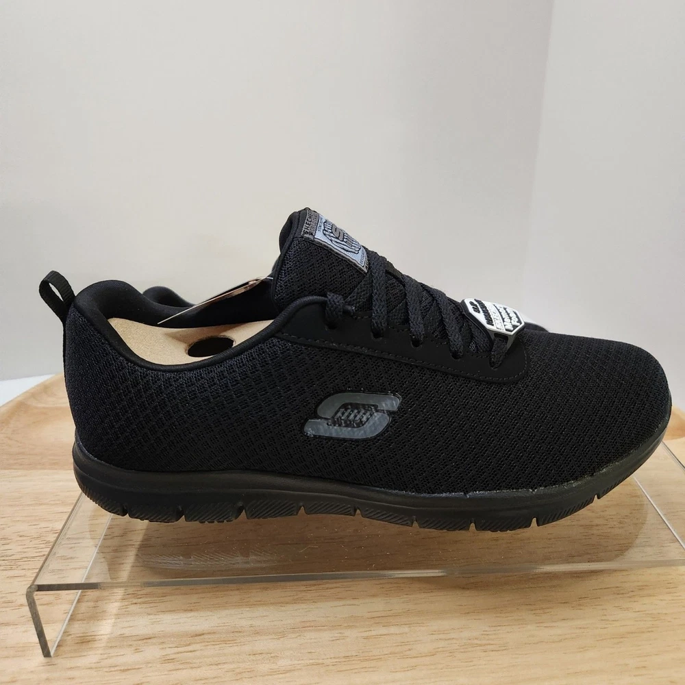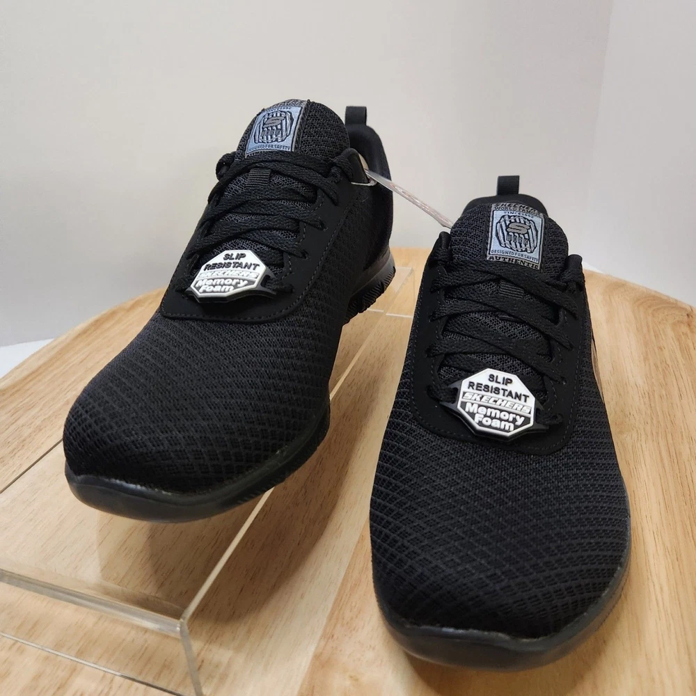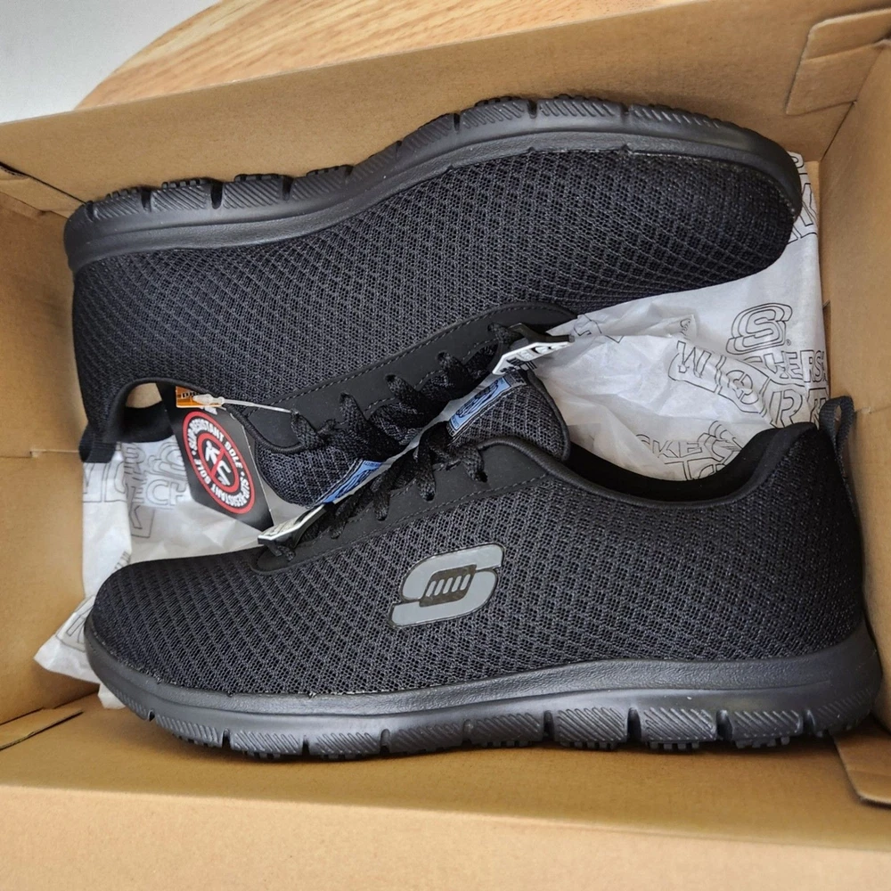 women's US size 8.5 Euro 38.5 Skechers Ghenter Bronaugh work shoes black slip-resistant relaxed fit memory foam clean soles, with box Please go by the photos and typed description (not auto fill) for item details. Any questions, just ask!