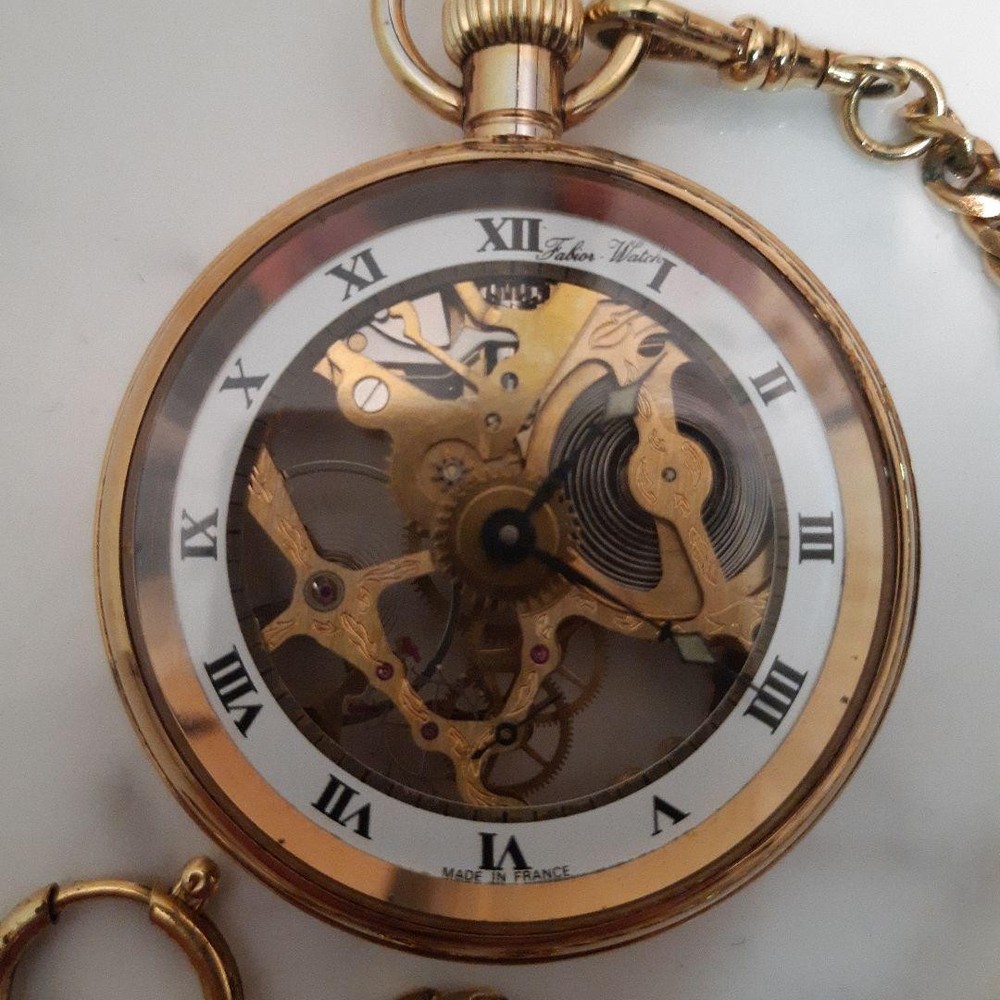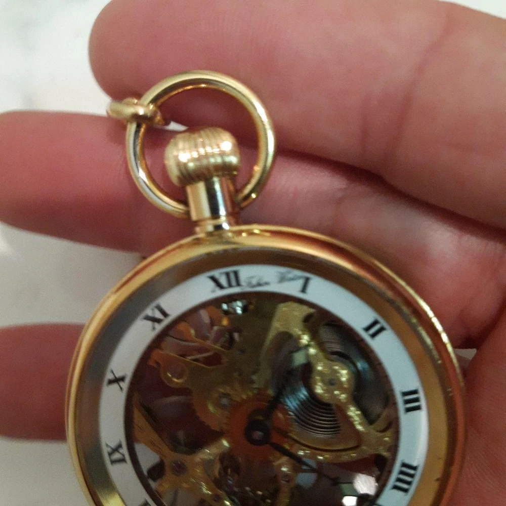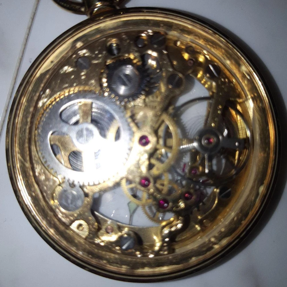 This skeleton pocket watch has a unique vintage charm with its visible gears and intricate design. The as-is condition adds to its nostalgic appeal, perfect for collectors who appreciate retro style. While it may not be flawless, the craftsmanship still shines, making it a great conversation piece. Just be aware it might need some TLC—ideal for those who love a bit of history on their wrist!