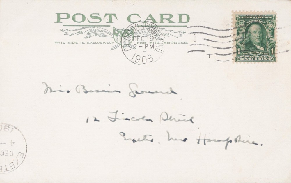 Colorado Scenery Original Painting Leslie J. Skelton November in Colorado Williamson-Haffner Co. Denver Postcard Posted 1906 Colorized Undivided Caption: Colorado Scenery, after the original painting by Leslie J. Skelton. November in Colorado. Copyright 1906, the Williamson-Haffner Co., Denver Publisher: Williamson-Haffner Co., Denver Postage Status: Posted. Handwritten message and address to Exeter, NH Postmark Information: Dec 19, 1906 Colorado Springs, Colo. and Dec ??, 190? Exeter, NH Dimensions: 5.5 x 3.5 in Weight: Under 1 oz Era: Undivided Back 1 901-1917 Manufacture Date: 1906 Condition: Pre-Owned in Very Good Condition. Some wear to edges and corners. No rips or tears noted. Please see photographs for details as they are considered part of the description. PLEASE NOTE: Postcards may contain flaws from age, handling and use. There may be slight imperfections such as wear to the surface, edges and corners, foxing, yellow/tanning, marks, stains, creases, folds and blemishes. Postmarks, stamps and writing might be on either side even if not actually mailed. Although we try to note any damage, please review the photographs carefully to see the card's condition for yourself. ** Smoke Free Home **