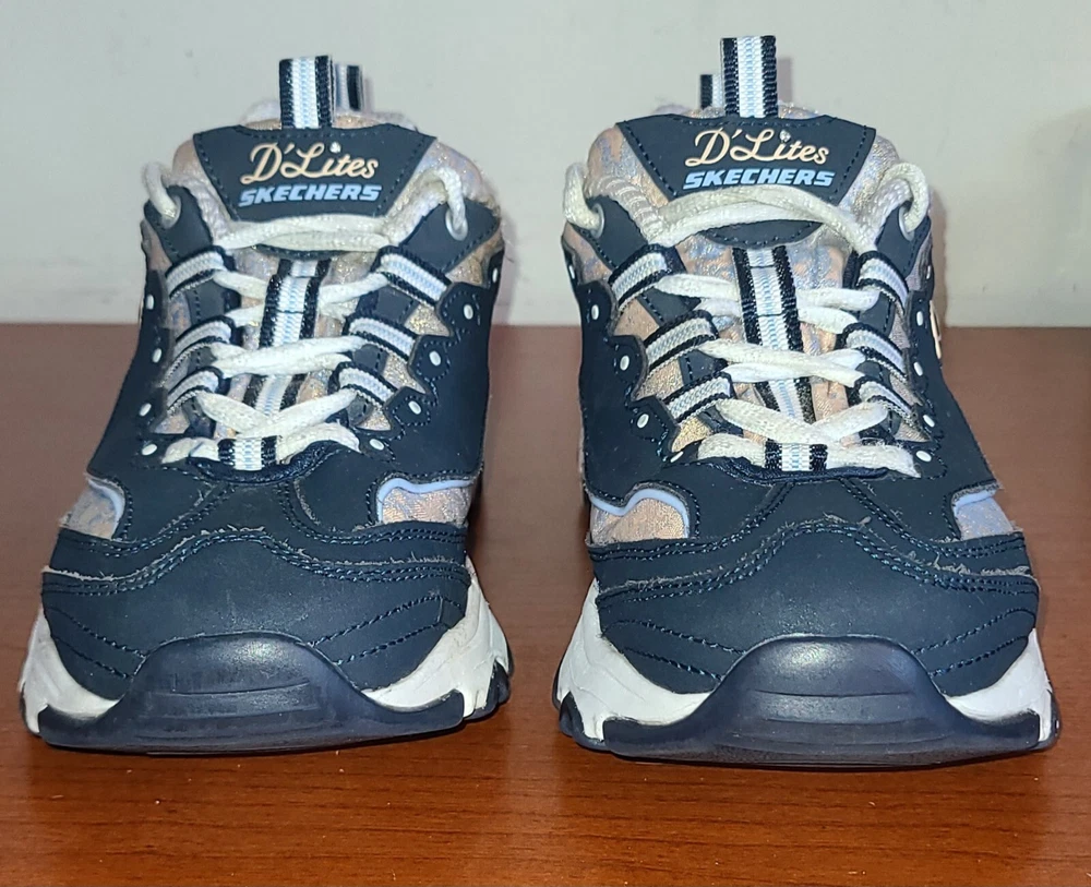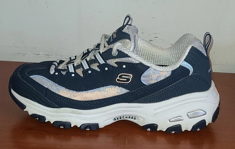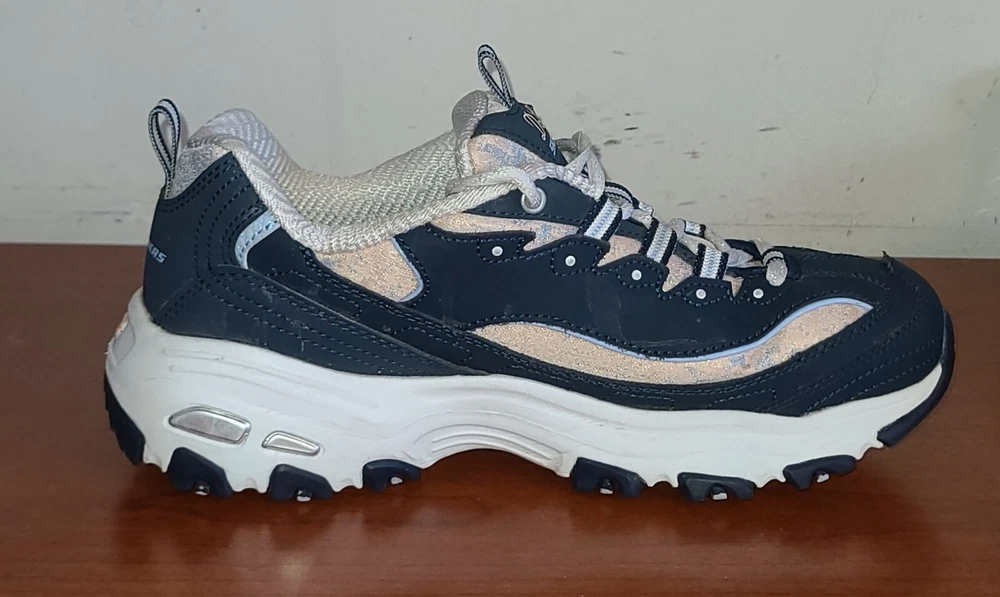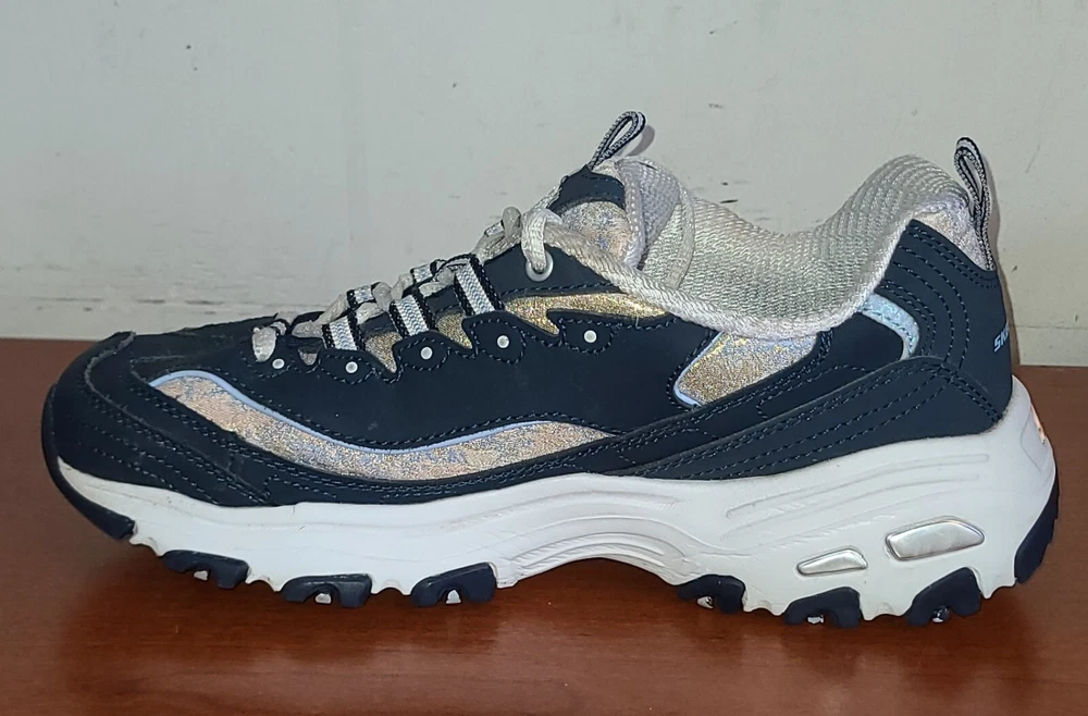 Get ready to experience the ultimate comfort with these Skechers D'Lites Air Cooled women's sneakers. These shoes are perfect for women who love to walk, run, or engage in any physical activity without compromising on style and comfort. The shoes feature a navy color scheme with glitter accents, making them perfect for any occasion, whether it's for activewear, casual wear, or workwear. The Skechers D'Lites Air Cooled sneakers come in a standard shoe width and have a lace-up closure for a secure fit. The shoes are made of high-quality leather synthetic materials and have a cushioned insole with memory foam for added comfort. The outsole is made of leather, and the cleat type is metal. These shoes are perfect for all seasons, including winter, summer, fall, and spring.