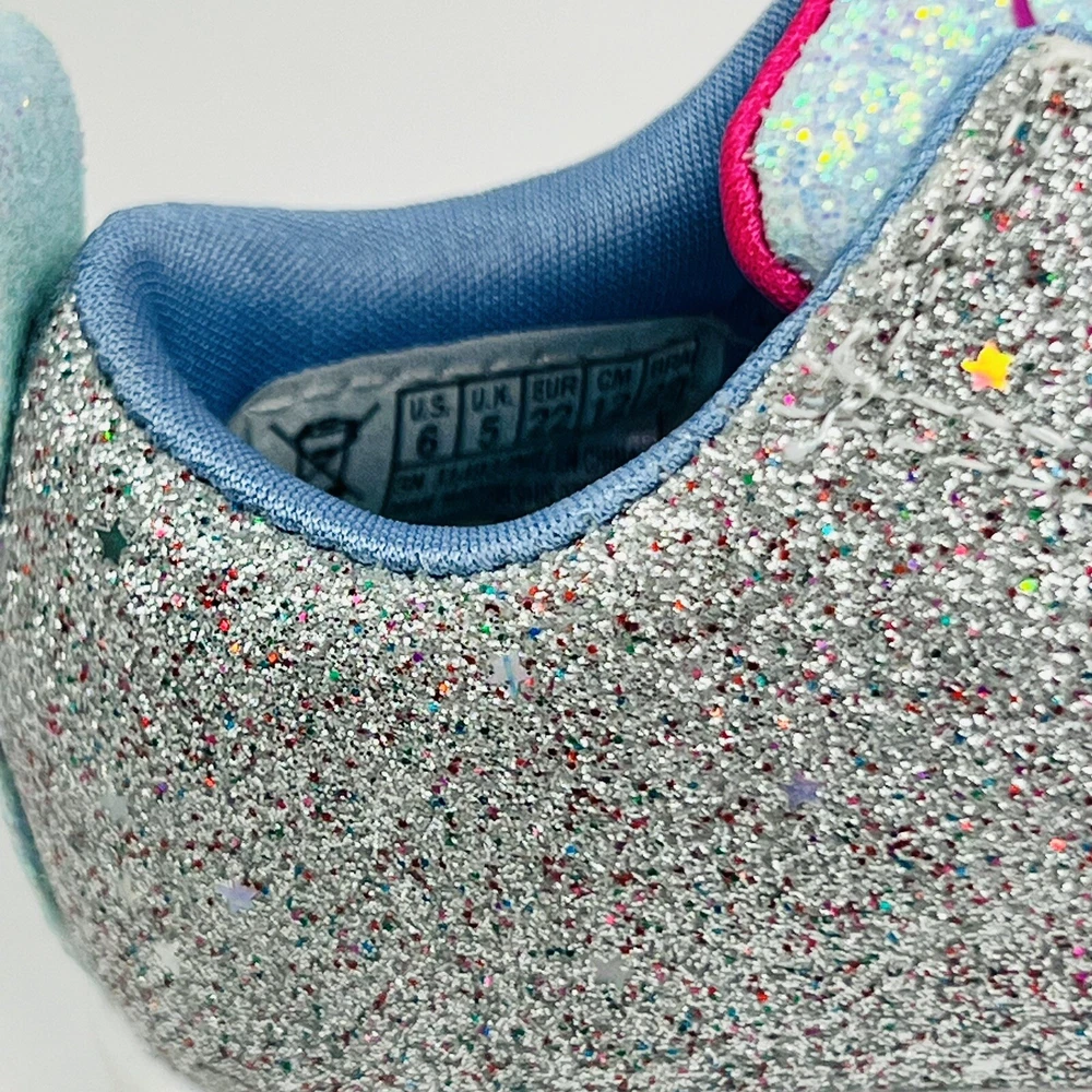 Super cute, sketcher, twinkle, toe girl, shoes size 6. Adorned with silver sparkles, stars above and velcro rainbow strap. Rhinestones on the toe light up with each step. New without box. Measurements: 6 1/8” length Shipping is calculated by eBay based on weight and size of package, which sometimes seems high, even to the seller. Therefore, seller shipping discount is shared with the buyer making it as low as possible. We use recycled shipping supplies, when possible. Due to new USPS policies, your item may take longer than USPS/eBay promises. Orders will be processed within stated time by seller. Security measures are taken to protect seller from fraudulent activity.