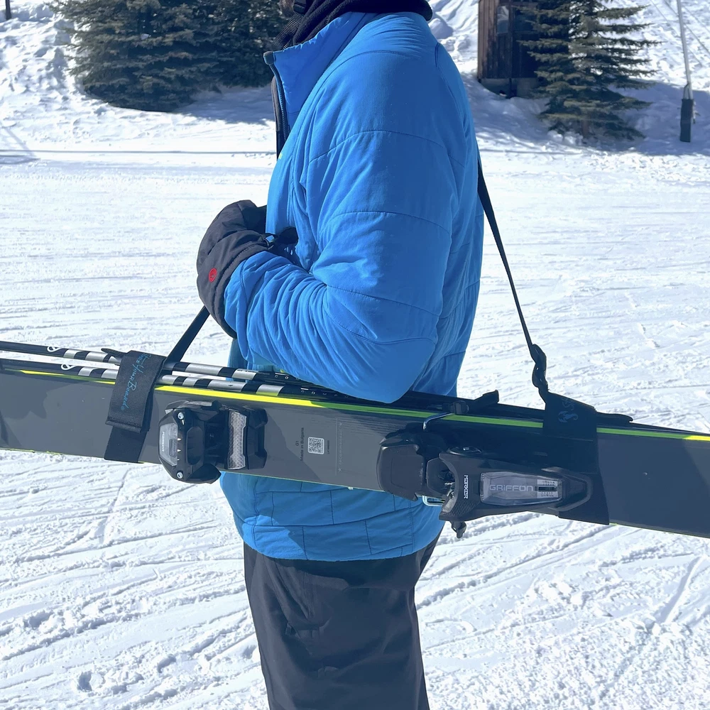 , the leaders in sports storage and accessories, brings you its new, heavy-duty Ski and Pole Carrier! Sold as a pack of 2 carriers. Easy and Comfortable. The Ski and Pole Carrier is the easiest way to transport your skis! This lightweight and compact carrying option allows you to comfortably move your skis and poles to and from the slopes. The adjustable shoulder strap allows you to position your skis in the way that is most comfortable for you. The easy-to-use straps make this the perfect accessory for skiers of all experience levels! Dual Purpose Unlike some ski carrying options, this carrier allows you to carry your skis and poles at the same time. When you are done transporting your gear and are ready to hit the slopes, this carrier easily folds to a size small enough to fit in your pack or jacket pocket. What skis will it fit? This fully adjustable product is capable of carrying all shapes and sizes of skis--, racing, XC, etc! Product Dimensions 47" Max Length 2" Wide Strap 2 PACK SKI CARRIERS: Transport pairs of snow skis over your shoulder or by your side with these durable, lightweight carry straps. ADJUSTABLE LENGTH: Hook and loop fastening straps adjsut to fit nearly any size skis. Fits most all-mountain skis, skis, freestyle skis, and backcountry skis. HEAVY DUTY: Durable nylon webbing is designed to handle the harsh elements of winter skiing. COMPACT, PACKABLE: Easily roll up the straps to in your ski jacket or boot bag. DESIGNED IN USA: Built to transport your ski gear and built to last!