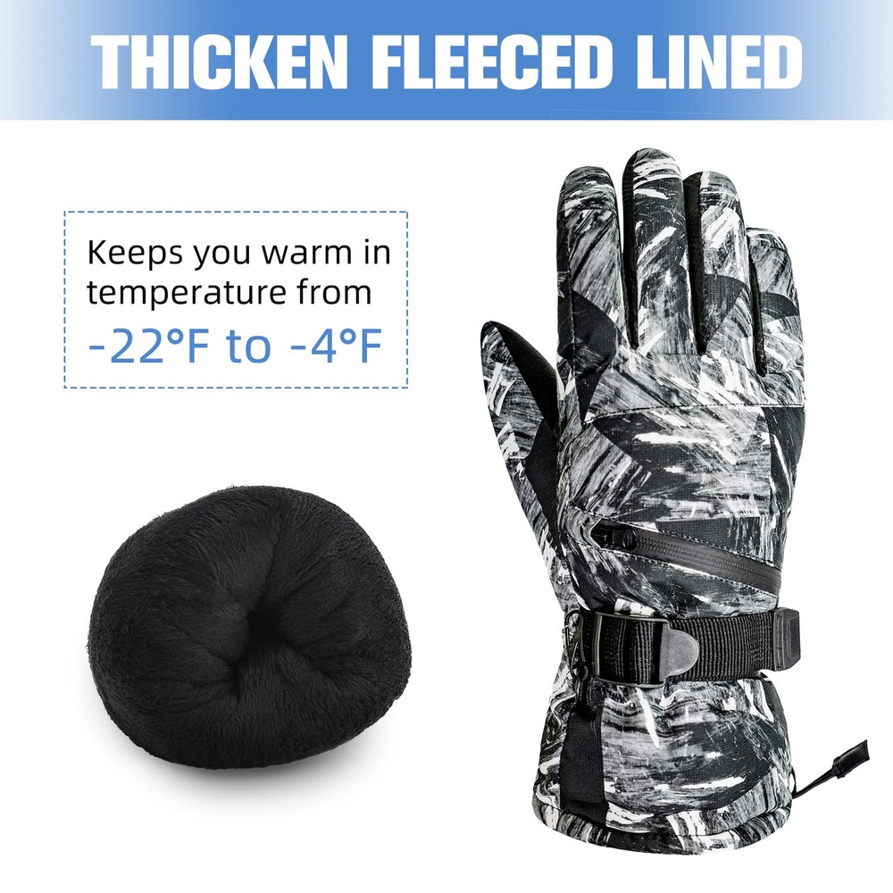 【Waterproof Winter Gloves】The snowboard gloves is made of carefully selected 100% polyester and the outer with waterproof material which effectively blocks the entry of water, suitable for winter outdoor skiing, snowball fights, climbing, work, etc. 【No-slip & Touch Screen Design】The palm of the cold weather gloves is made of PU non-slip fabric, which is soft and comfortable to ensure that your fingers are flexible in this snow gloves and let you firmly grip things. Touchscreen finger design which make you can effectively use your phone, smart watch and others without taking off the gloves. 【Adjustable & Prevent Loss Design】Adjustable straps and pull strings are useful for keeping snow out, you can tight it as much as you want. Card zipper pocket to carry your key card, ski pass and other small valuables. Anti-fall Hook to connect the gloves and prevent lost. 【Warm & Durable】Thicken fleeced lined can resist temperature from -22°F to -4°F, keep your hands warm. And the durable thermal gloves with strong and neat alignment can be used for a longer time. 【Occasion】Winter warm glove for women is suit for skiing, snowboarding, sledding, shoveling, playing the snow, motorcycle, cycling, mountain climbing and other outdoor occasions. This motorcycle gloves can to protect themselves from the cold during cold weather. Hand Wash recommended.