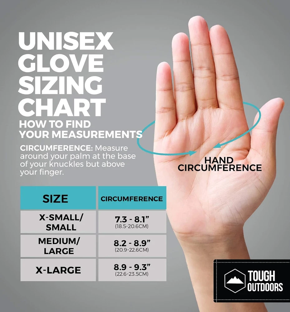 Product Description Tough Outfitters Snow and Ski Gloves Your hands have never met warmth and comfort like this. With Summitloft thermal insulation fit for even the most extreme sub-zero temperatures, a waterproof and wind-resistant nylon shell that will keep you warm and dry when you go out into the elements, and a TPU breathable membrane that allows sweat and moisture to escape as you turn up the heat doing your favorite activities, we’ve got you covered, warm, and dry. Crafted with a synthetic leather palm, a tough, reinforced all-nylon outer layer, and dual seams for extra strength and durability, our winter gloves will be there with you for as long as you can still shovel your own driveway or throw a snowball. These gloves have Summitloft thermal insulation fit for even the most extreme sub-zero temperatures. Guaranteed to keep you warm. With breathable TPU membrane that wicks out sweat and moisture rapidly you turn up the heat doing your favorite activities, ensuring your hands to stay dry. Constructed to add warmth and protection from elements. With waterproof and wind-resistant nylon shell that will keep you warm and dry when you go out. From hitting the mountains for a ski, snowboard, or snowmobile trip to working outdoors or shoveling snow in the dead of winter, our ski gloves will keep you warm and dry. Fit for extreme cold temperatures and all the snowball fights you can handle, our ski gloves will keep you toasty even in the dead of winter. Featuring a double layer of synthetic leather over the entire palm, our winter gloves will help you get a better grip on your ski poles or snow shovel. We reinforced our winter gloves in every place we could — double seams, double faced knuckles, fingers, and palms, and a drawstring wrist closure to keep the snow out, all ensuring total durability while the nylon shell construction keeps this glove lightweight. Available in five sizes ranging from XS to XL, you’re sure to find the perfect fit. Our gloves are designed to maintain your dexterity and move with you, rather than resist you. An adjustable wrist strap with a buckle adds extra reinforcement to keep everything where it’s supposed to be.