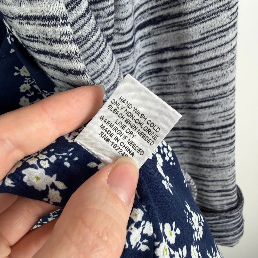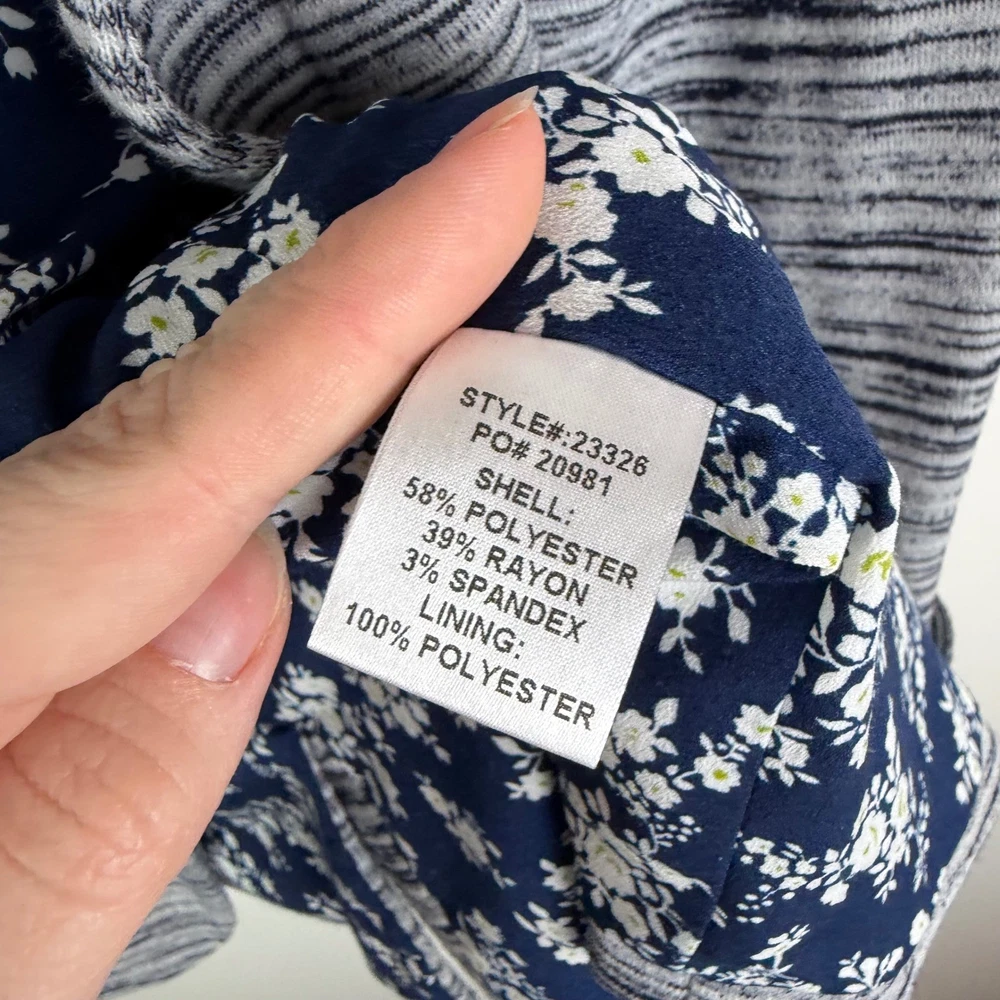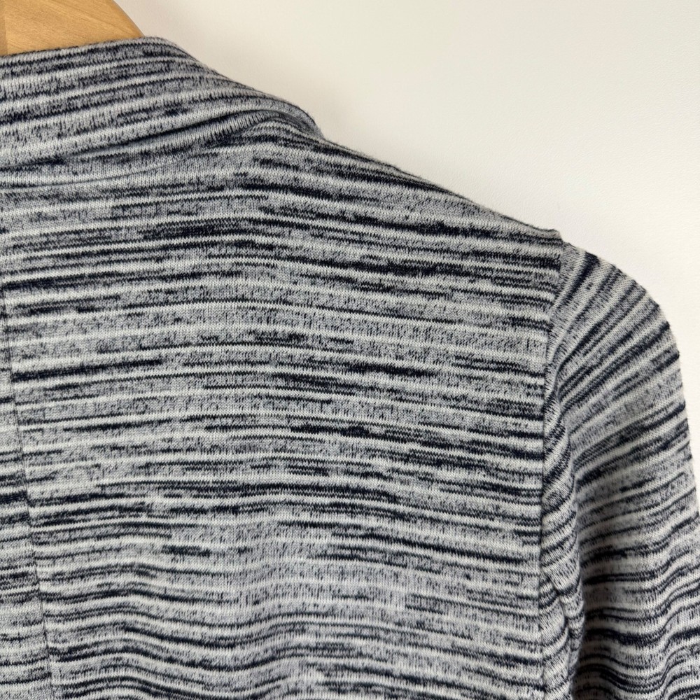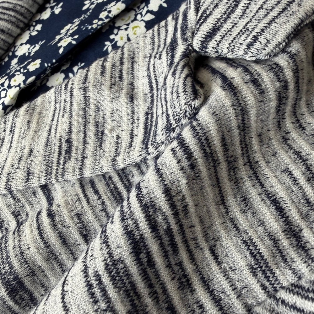 Good Pre-Owned Condition (see pics for details) Flaws: Has pilling throughout, including inside lining. A stylish gray striped knit blazer from Skies Are Blue. This blazer features a beautiful navy floral print lining for a pop of color and personality. The rolled cuff sleeves add a touch of casual sophistication. Perfect for layering over tops for a polished look at the office or for a chic evening out. Type: Blazer Outer Shell Material: Polyester Style: Basic Jacket Department: Women Lining Material: Polyester Theme: City, Hipster Accents: Button Features: Pockets, Unlined, Lightweight, Breathable Fabric Type: Knit Pattern: Striped Season: Spring, Fall Occasion: Casual, Workwear Sleeve Length: 3/4 Sleeve Keywords: striped blazer, knit blazer, floral lining, women's blazer, casual blazer, office wear, evening wear, lightweight jacket, rolled cuffs, preppy, business casual, layering piece, sophisticated, Skies Are Blue, Blazer, Knit Blazer, Open Front, Career Jacket, Small, Stretch, Lightweight, Casual Blazer, Officewear, Workwear, Gray Striped Measurements: included in photos. Please compare the measurements to something you already own for a great fit! Fast shipping: Shipped out next business day! Please let us know if you have any questions!