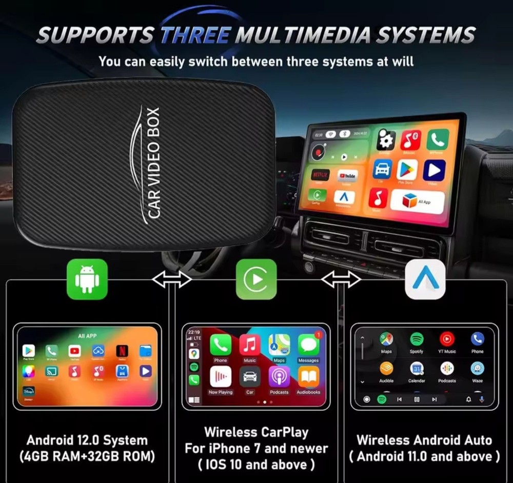 SkillDrive 2026 Car Ai Box 3 in 1 Wireless CarPlay Android Auto Adapter TV Box on YouTube Netflix Car Intelligence System Android 12.0 Newest Version