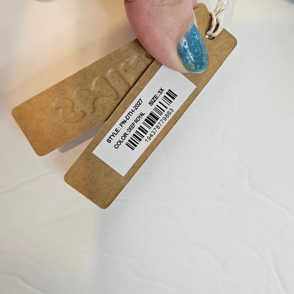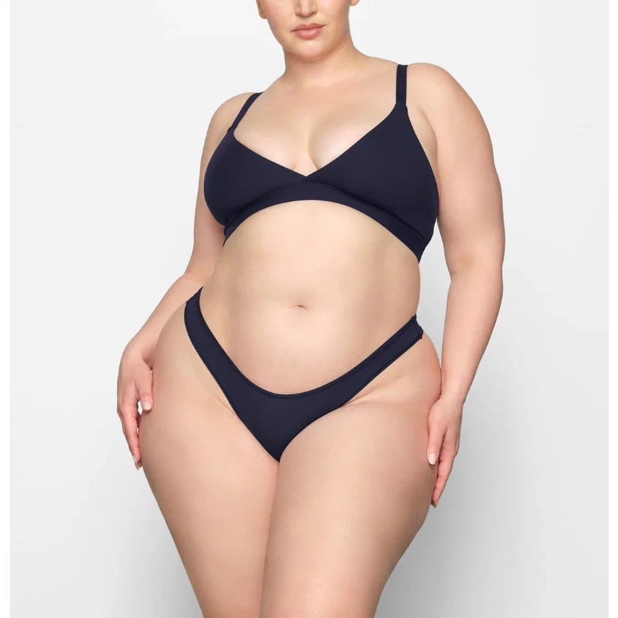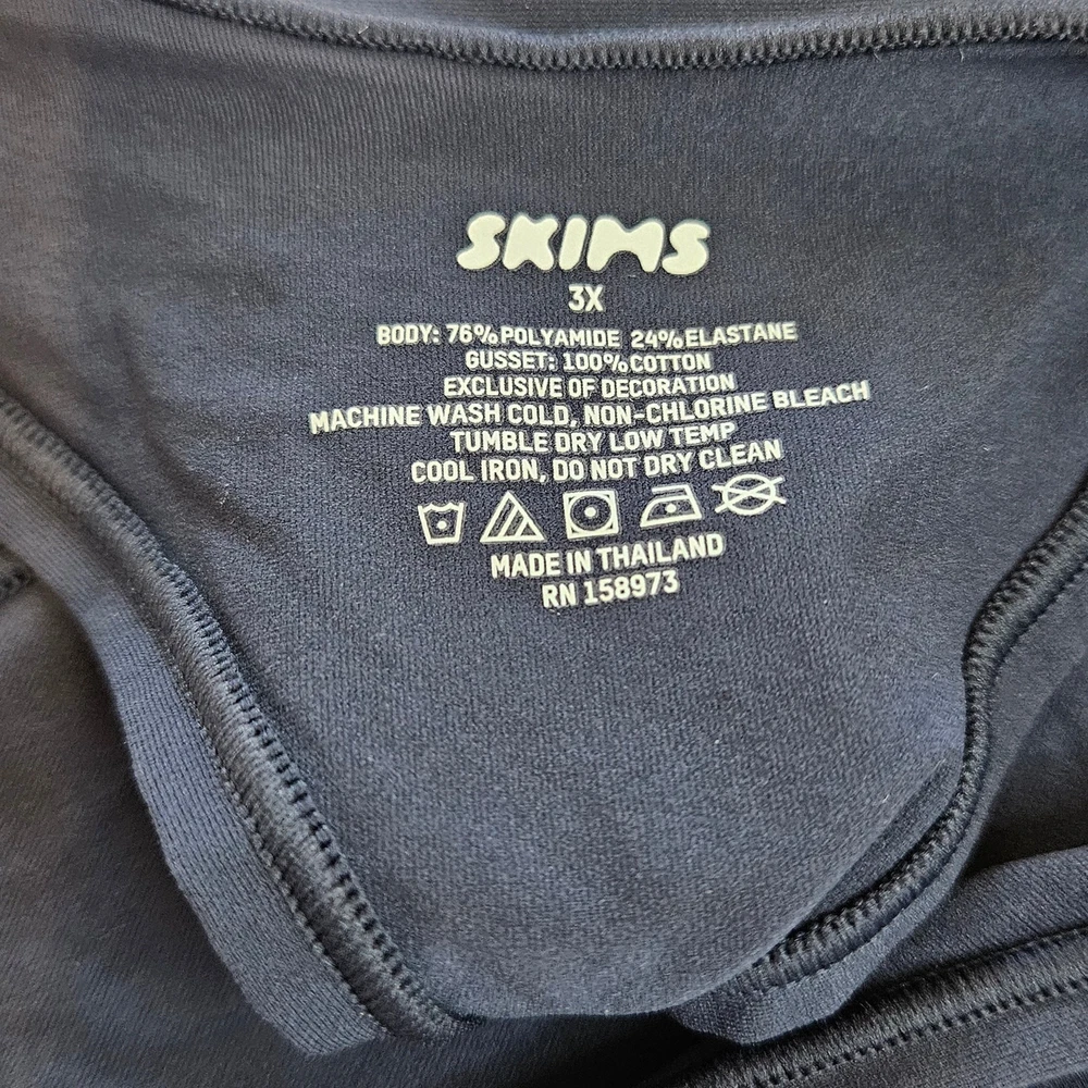 Skims Fits Everybody Dipped Front Thong Color Deep Royal Plus 3x Featuring a dipped front and high cut fit, this flattering throwback thong style is updated in a soft, butter fabric with innovative stretch. The Dipped Thong has a no cut design that prevents digging and gives a second skin feel. Dipped V Front, Thong Back, Quick-Dry, Max-Strech Technology Kellee Is Size 14 And 5’ 9”, Wearing Skims 2x 76% Polyamide / 24% Elastane Machine Wash Cold, Non Chlorine Bleach, Cool Iron, Do Not Dry Clean pn-dth-2027 Size 3x Approximate Measurement: waistband - 12" across New with tags, no flaws. Model is wearing the same style, different color. Smoke free, dog friendly home.