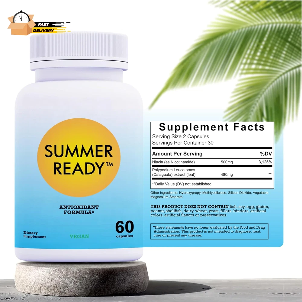 Store New Arrivals Add to Favorite View Feedback Contact Skin Care Supplement Capsules - Nicotinamide / Niacinamide/ Niacin Description Primary Supplement Type Vitamin-b Product Benefits Antioxidant,Skin Care Flavor Unflavored Item Form Capsule Package Dimensions 4.29 x 2.17 x 2.13 inches; 2.08 ounces Manufacturer LLC ✅DERMATOLOGIST RECOMMENDED POTENT ANTIOXIDANT - From natural antioxidants in Polypodium leucotomos extract, to help promote your skins health from within.* ✅HIGHEST DOSE OF POLYPODIUM LEUCOTOMOS PER SERVE - 480mg; which promotes skin health against free radical damage! Plus 500mg Vitamin B3 (non-flush) - two of the most important vitamins to help promote skin health.* ✅SUPPORTS SKIN HEALTH, ELASTICITY AND ANTI-AGING - Our pills work from within to promote skin health against free radicals, combating premature skin aging. Free radical damage can occur from sun exposure, diet, pollution, chemicals, and smoking.* ✅NOT A SUBSTITUTE FOR TOPICAL SUNSCREEN - Our advanced dietary tablets help to supplement the skin's collagen layer and may help boost skins immunity and promote skin’s natural defenses.* ✅HIGH QUALITY YOU CAN TRUST - Vegan, gluten free formula. Manufactured in a FDA registered and cGMP-Registered Facility in USA. Contains no artificial dyes, flavor, fillers, binders, preservatives, yeast, corn, milk derivatives, lactose, soy, salt, sodium, sugar, gluten, starch or wheat. Product Description Polypodium Leucotomos Polypodium Leucotomos is a fern native to Central and South America. The extract of this fern has been used in Europe and in Central and South America for centuries for its health benefits. Backed by decades or research, polypodium leucotomos is known for its ability to support skin health through its rich antioxidant properties. Studies indicate that polypodium leucotomos supports the skin against free radical damage and oxidative stress from outside sources including pollution and light. Polypodium Leucotomos promotes overall skin health from within.* Nicotinamide Nicotinamide ( non-flushing form of Niacin) is also known as niacinamide, is a form of vitamin B3, that is highly recommended by dermatologists. Nicotinamide also functions in boosting the skins natural defense mechanisms.* Summer Ready Supplement Summer Ready is a dermatologist recommended dietary supplement that promotes skin health through its antioxidant rich patent pending formula. The formula promotes your skins ability to fight the damaging and aging effects of free radicals. Summer Ready is recommended daily with other skin caring habits including, adequate hydration, broad brim hats, topical sunscreen to help protect and maintain your healthy and youthful-looking skin.* ABOUT US We offer the best prices around on high quality products. Our E-store includes media such as books, movies, music and games while offering electronics, toys, sporting apparel, clothing, tools, general home, garden items and more. SHIPPING We are always working hard to ensure your package arrives as soon as possible. Please understand that some factors like weather, high postal traffic, and the performance of shipping companies are outside of our control. We offer free shipping to the lower 48 states and ship within 2 business days of payment, usually sooner. We do not accept P.O. Boxes. Please provide a physical address. For shipping outside of the continental USA, we only use eBay's Global Shipping Program.The item is shipped to KY and then sent to the rest of the world. International customers are responsible for all duties and taxes. Continue to check out in order to calculate costs for shipping the item to your country. Messages regarding eBay's Global Shipping Program MUST be directed at eBay EXCLUSIVELY. RETURNS We offer a 30-Day Return Policy on items which you are not completely satisfied with. You have the option for a full-refund or an exchange of the item. No returns are available on items shipped outside of the USA. PAYMENT We accept PayPal. CONTACT US This page content is yet to come Please ad us to your favorite seller and visit again later Thank You CUSTOMER SATISFACTION We try our very best to make sure every customer is completely satisfied. If there's a problem, message us! We're happy to help. WE ACCEPT Copyright © 2021 AutoDS. | All Rights Reserved