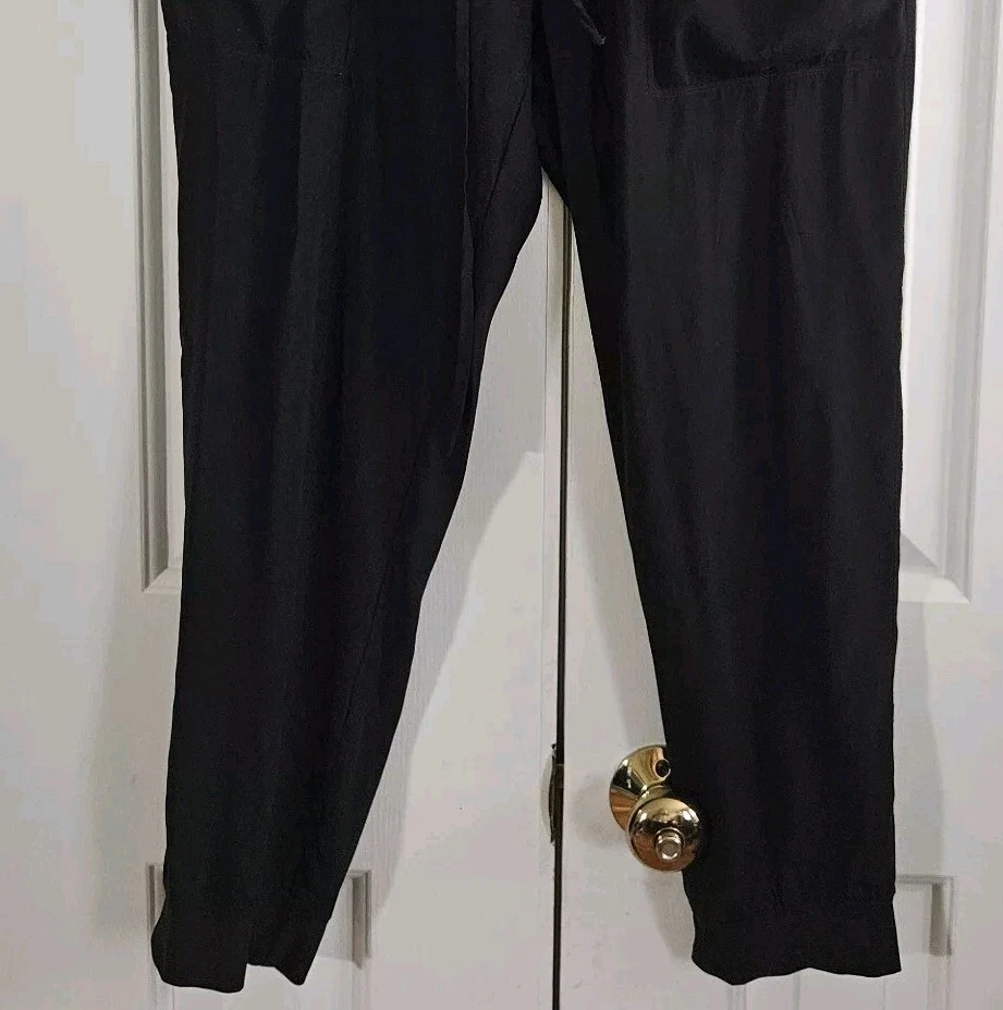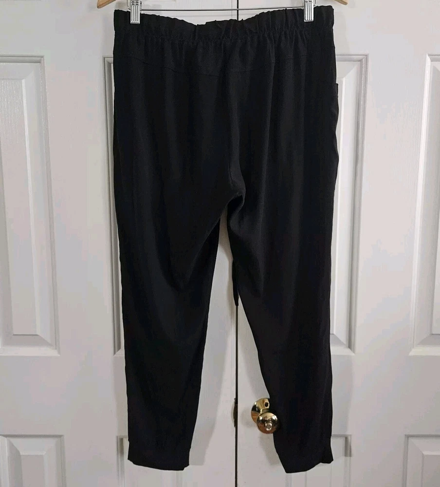 Skin and Threads Womens Silk Jogger Pants Black Pull on 3 L Cropped Cargo pocket