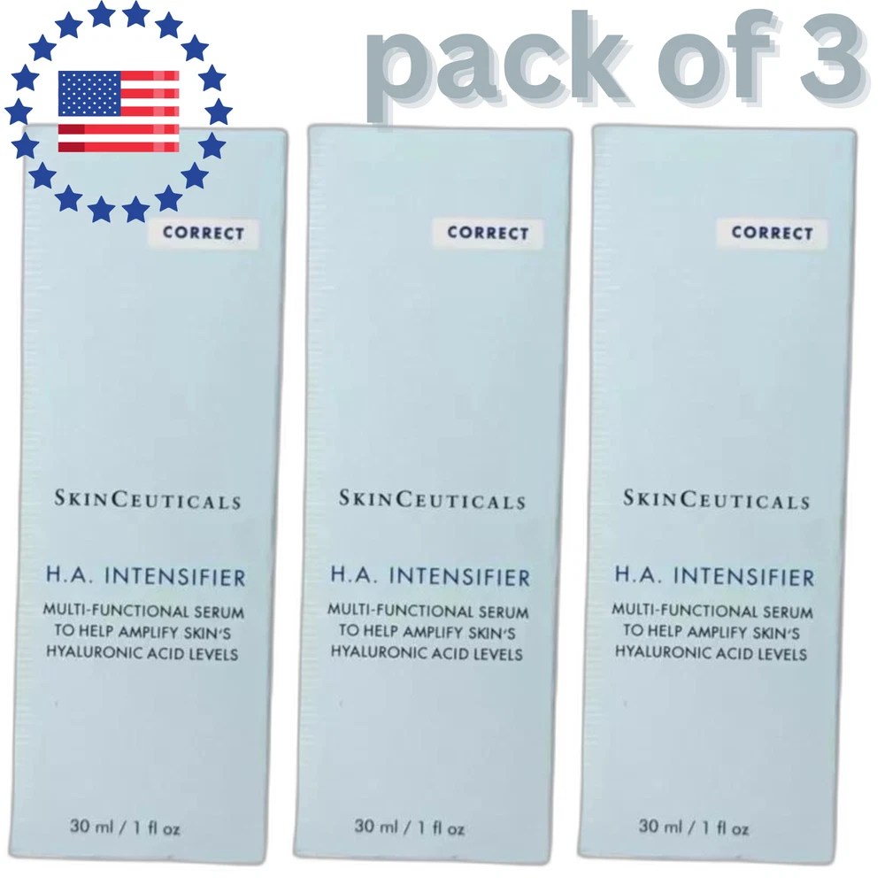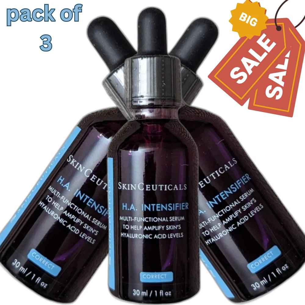 SkinCeuticals H.A. Intensifier Multi-Functional Serum - 30ml (Pack of 3) Brand New - Bulk Foam Packaging Upgrade your skincare routine with SkinCeuticals H.A. Intensifier Multi-Functional Serum , now available in a convenient pack of 3. This advanced serum is designed to enhance skin's natural hyaluronic acid levels, providing powerful hydration, firmness, and visible anti-aging benefits. Product Features: Hyaluronic Acid Boost : Increases skin’s hyaluronic acid levels by up to 30%, delivering deep hydration and helping to plump the skin. Reduces Signs of Aging : Visibly diminishes fine lines, wrinkles, and loss of firmness for smoother, more youthful-looking skin. Multi-Functional Formula : Targets multiple skin concerns, improving texture, elasticity, and overall radiance. Suitable for All Skin Types : Ideal for daily use, this serum is gentle enough for all skin types, including sensitive skin. Packaging : Bulk Foam Packaging : To offer you the best value, this pack of 3 serums comes in bulk foam packaging, ensuring each bottle is protected during transit. How to Use : Apply 4-6 drops to your face, neck, and décolletage morning and night, following cleansing and before moisturizing. Size : 30ml / 1 fl oz each (Pack of 3) Condition : Brand new in bulk foam packaging. Take advantage of this great value pack and enjoy the long-lasting hydrating and anti-aging benefits of SkinCeuticals H.A. Intensifier . Perfect for keeping your skin looking youthful and radiant!