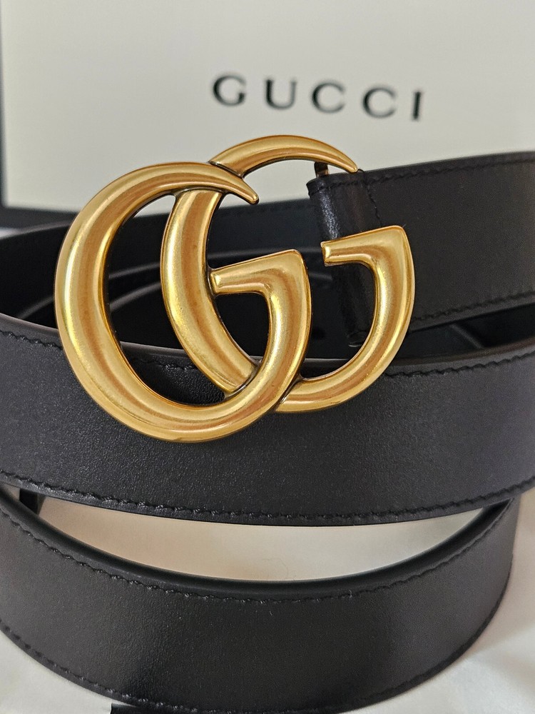 Get it Fast! Same Day Shipping! Womens Gucci Skinny Marmont Belt 1" Version Gold GG Buckle Comes with Dust Bag as Shown 100% Authentic Size 80cm 26-28 Waist or 2-4 dress size please check your size! Measures 29" from Buckle Pin to first hole and 33" last hole. Will Ship as Soon as Purchased!