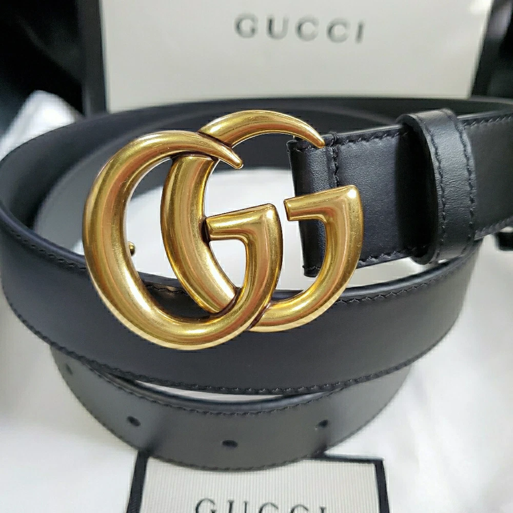 Authentic Womens Gucci Skinny Marmont Belt 1" Version Gold GG Buckle Comes with Dust Bag & Box as Shown 100% Authentic Size 85cm 28-30 waist or 4-6 dress size please check your size Will Ship as Soon as Purchased Arrives in 3 Days Time