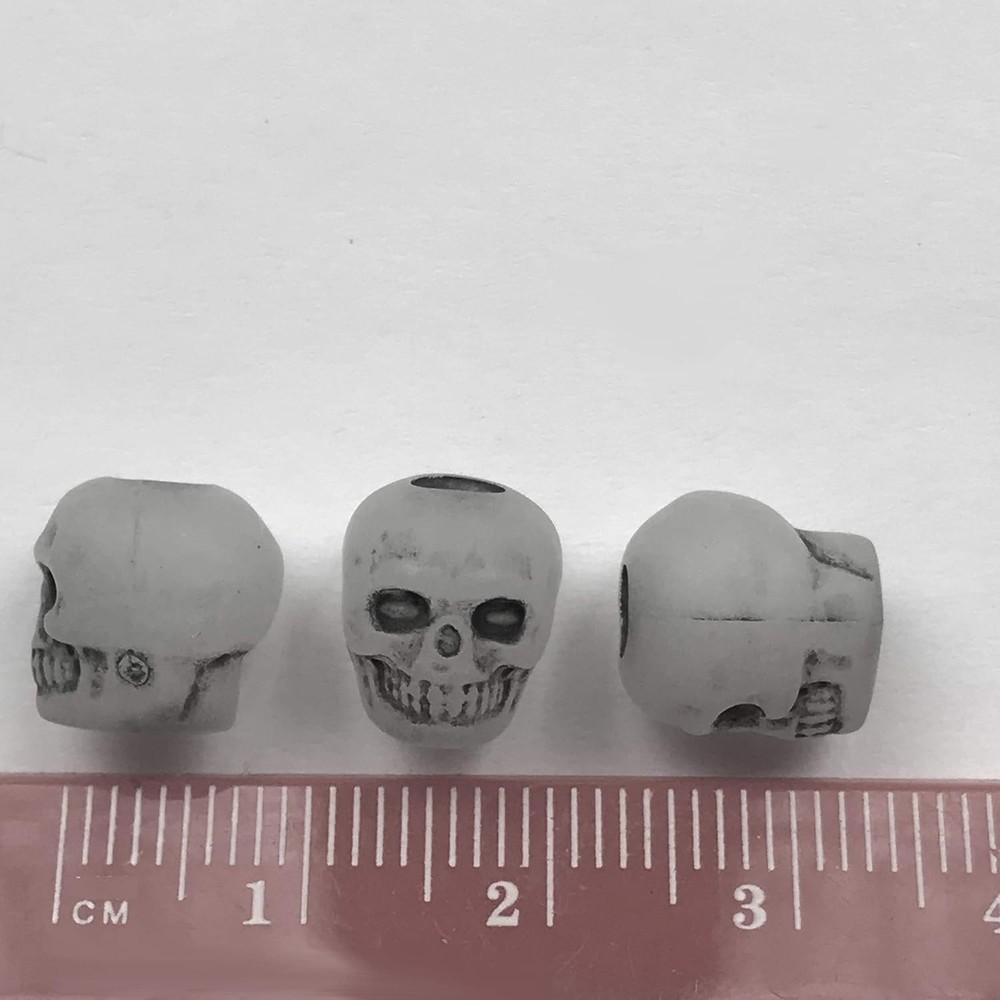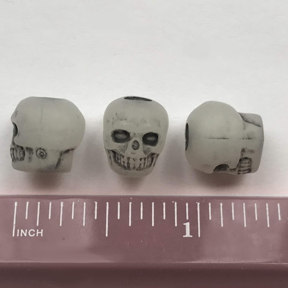 Skull Beads Bone White Aged Antiqued Pony Made in USA Small, Product Details Color: White Material: Styrene plastic Size: Small Brand: SeedBeadExplosion Shape: Round Number of Pieces: 50 Manufacturer: BeadExplosion Product Dimensions: 5 x 4 x 0.5 inches Item Weight: 0.634 ounces Item model number: B07585 High quality plastic beads, great for fun crafts. Lightweight pony beads. Pack of 50. Made in USA. Hole runs top to bottom. Skulls measure 10.5mm with a large 4mm (3/16") hole. Hole runs top to bottom. High quality plastic beads, great for fun crafts. Lightweight pony beads. Pack of 50. Made in USA.Skulls measure 10.5mm with a large 4mm (3/16") hole. Hole runs top to bottom.