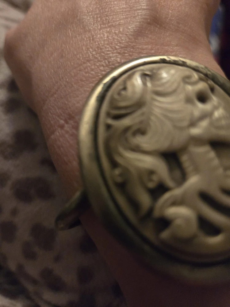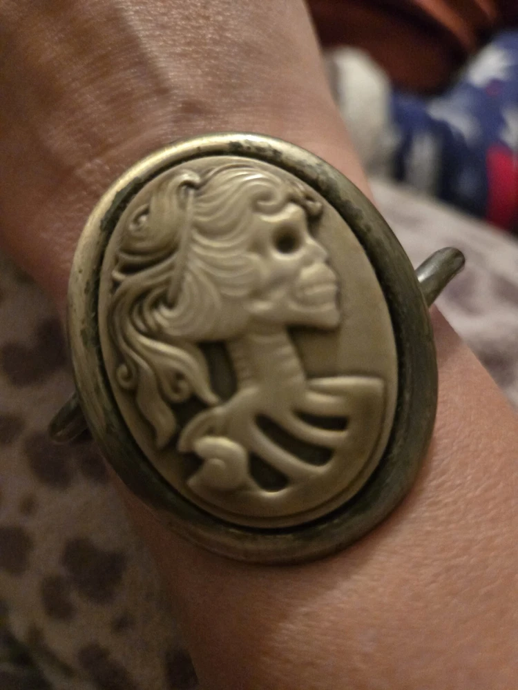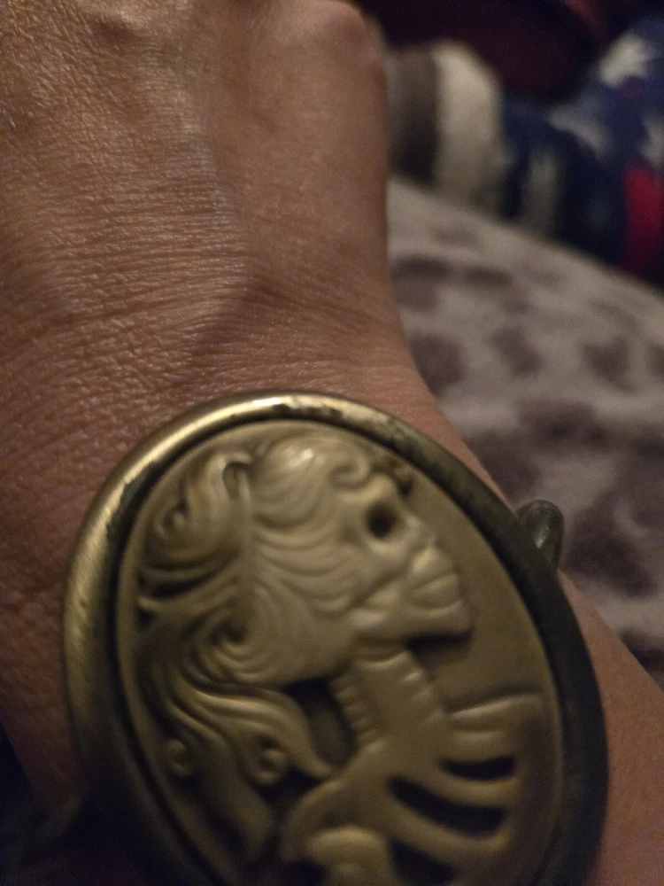 Skull Cameo Bracelet Steampunk. Metal plating is chipped. See pics