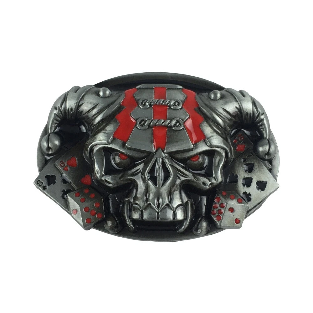 Add some edgy flair to your outfit with this cool Western belt buckle featuring a skull design. Made from high-quality zinc alloy and metal, this buckle is durable and stylish. The buckle fits a belt width of 1.5 inches and features a unique design with accents that make it stand out. Perfect for men and women, this buckle is ideal for those who love Western, USA, American, punk, cowboy, and retro themes. Whether you're heading to a concert or just want to make a statement, this buckle is sure to impress. Show off your love for skulls and all things metal with this stylish accessory.