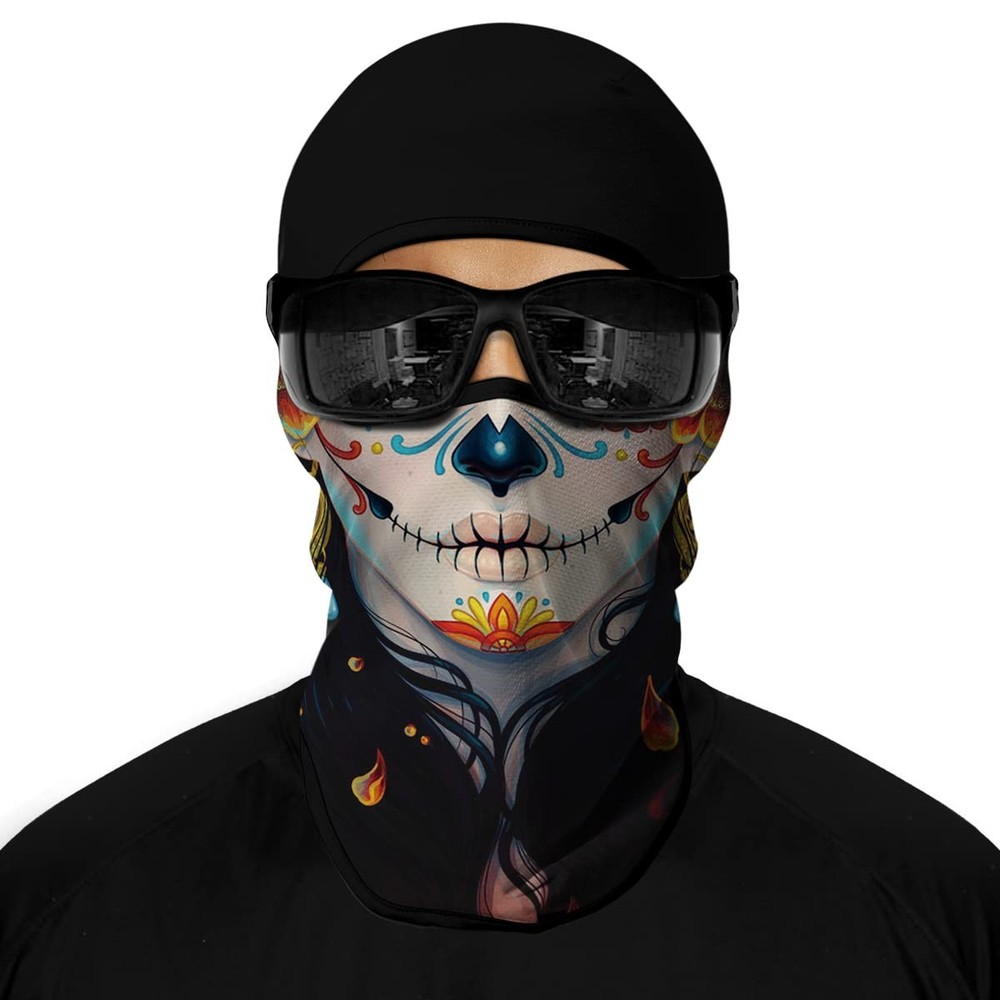 This skull face mask is a game-changer for outdoor adventures! The 3D design looks awesome and the UPF 20 protection keeps me safe from sunburn while riding my motorcycle. It stretches perfectly, blocks wind and dust, and dries super fast after washing. Super comfortable for all-day wear during cycling, skiing, or just casual outings. The quality is top-notch with certified protection - definitely worth every penny!