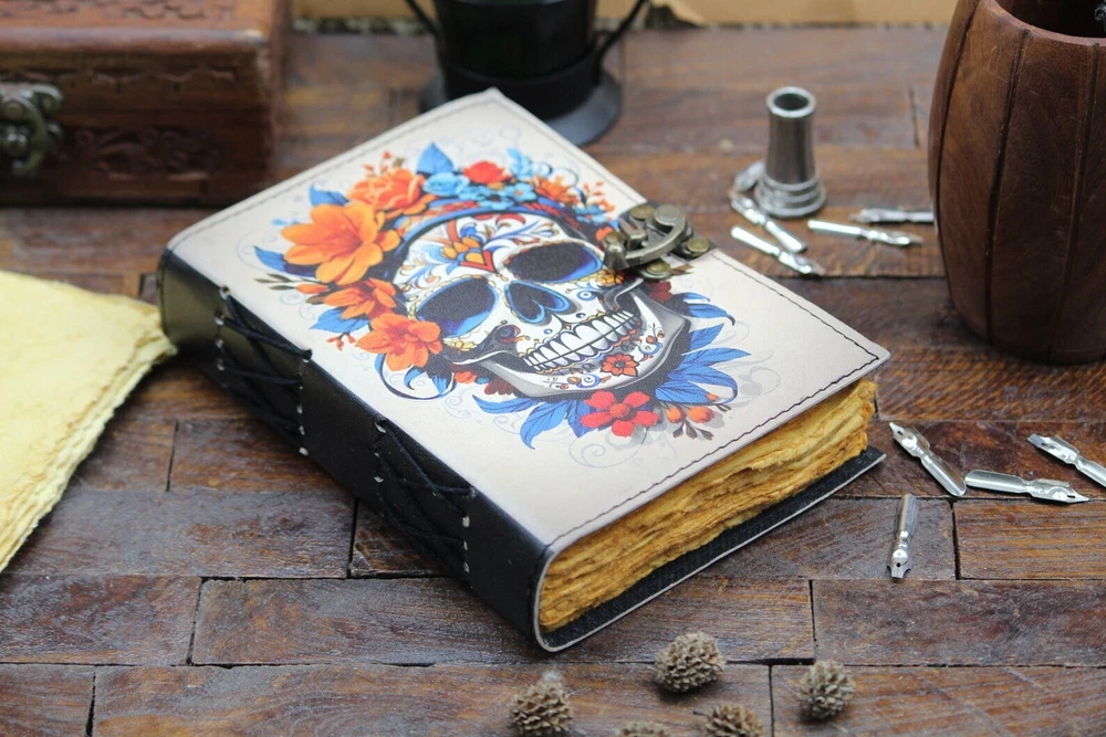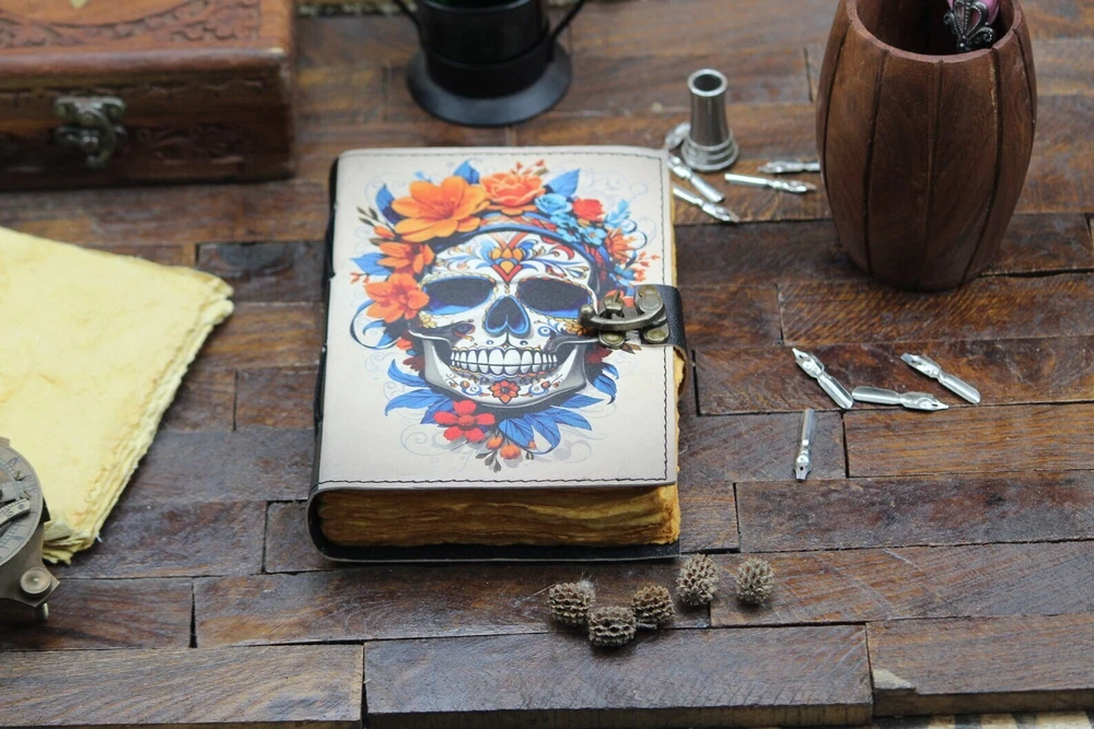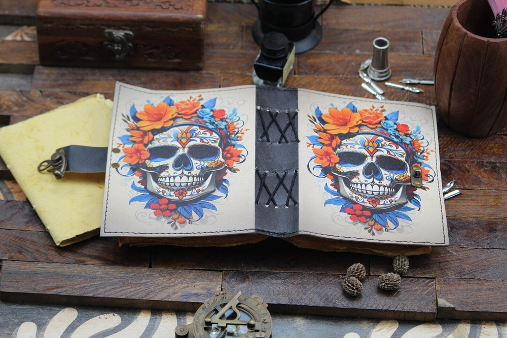 This luxury edition leather journal features a unique skull print on the cover, making it a limited edition collectible item. Handmade in India, this personalized journal is perfect for those looking for a special and exclusive writing space. The first color photo of the journal adds a distinctive touch to this special edition piece. With a luxurious leather cover and personalized attributes, this journal is ideal for those seeking a high-quality and stylish writing instrument. Photo personalization on cover - If you want me to print an image, please attach the image Etsy conversation box after you place your order and choos photo personalization in the variation Option if you don’t want personalization so please choose skull journal. Perfect Gift idea for Valentines Day Mushroom Printed Blank Spell Book of Shadowd Leather Journal Christmas gifts for womens - 200 Deckle-Edged Pages - Choose Your Size" Unleash your creativity with our Exquisite Handcrafted Leather Journal featuring a Mashroom Print. This journal is a masterpiece, not just for your ideas but for your senses too. It boasts 200 premium deckle-edged pages that invite your pen to dance across their textured surface. Available in various sizes - 7x5, 8x6, 10x7, and 13x10 - you can choose the perfect canvas for your imagination. The genuine leather cover exudes quality and durability, and it even comes with a one-month warranty. Whether you're gifting it or keeping it for yourself, this journal is designed to inspire and endure. Get ready to embark on a creative journey like no other. Mushroom ,Pink Mushroom,Blank Spell book,Book of shadows,Leather journal,Moon phases,Mushroom design ,Vintage style ,Nature inspired,Mushroom journal,Red mushroom ,Fairy forest ,Art journal, Writing diary