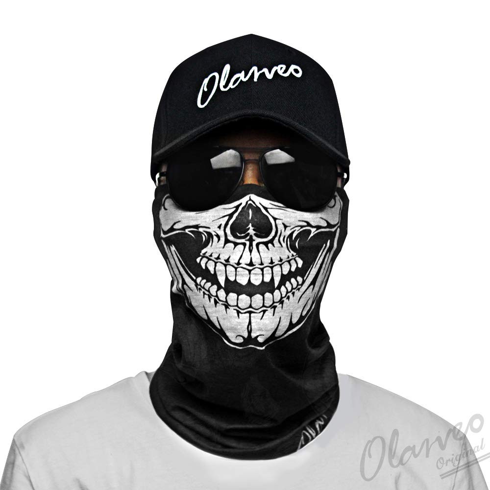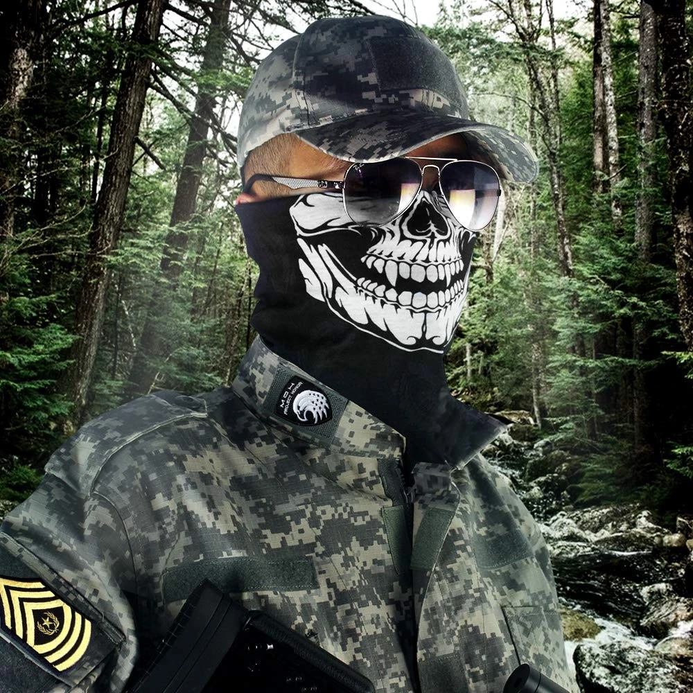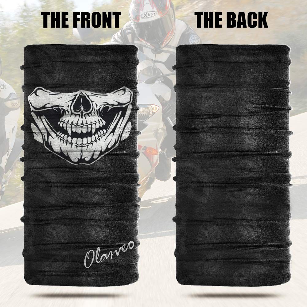 Breathable Seamless Tube Skull Face Mask half Windproof Motorcycle Bicycle Face Mask ORIGINAL PATTERN DESIGN: Born for adventurers who crave individuality and demand performance, our innovative sports headwear redefines what it means to conquer the elements. Stand out with bold patterns,We use PREMIUM HI-TECH POLYESTER FIBERS, which Provide Premium Performance for Breathability, Absorbency, Wicking, Durability, and Abrasion Resistance. MULTIFUNCTION: There are Many Ways to Wear. It can be Worn as a Bandana, Helmet-liner, Neck gaiter mask, Scarf, Beanie, Neck Gaiter Mask, UV Protection Bandana, Neck Warmer Balaclava, Headband Size: 19.5×9.5 inch. Stretchy Material Means it will Fit All People, No Matter whether you are a Woman, Man, or Teenager. FEATURES: Quick Dry, Ultra Light, Breathable, Soft, Wrinkle Free, Sweat-absorbent, Stretchy, Dustproof, Wind Resistant, Anti-UV. SUITABLE for Motorcycling, ATV, Cycling, Skiing, Snowboarding, Hiking, Skydiving, Running, Hunting, Camping, Fishing, Paintball, and Working Outside. More Than Gear—It’s Your Identity We don’t follow trends; we set them. empowers you to express your unique spirit while tackling nature’s challenges. Our designs blend street-smart aesthetics with rugged practicality—because looking sharp should never come at the cost of performance