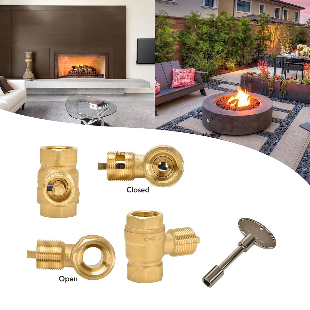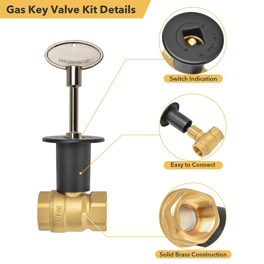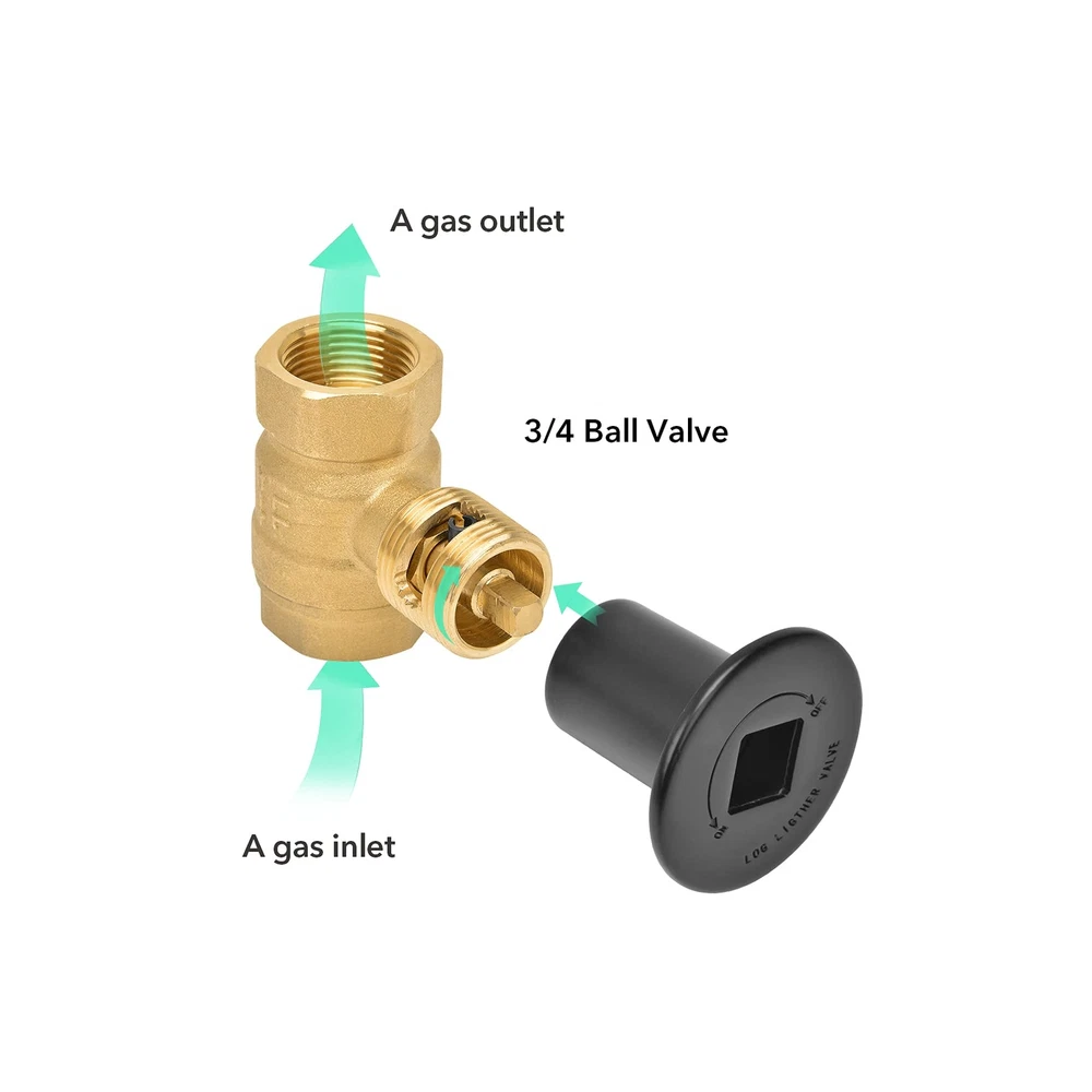 For use with natural gas or liquid propane fuels; Rated at 300,000 BTU; 3/4PSI High capacity flow for best flame performance, 3/4 inch inlet and outlet with standard female NPT threads Includes Quarter-Turn Ball Valve(brass), 3 inch Key and Floor Plate Flange( flat black) Ball valves are superior to globe valves for on/off control without pressure drop Great for homemade fire pit, fire bowl, fire table, fireplace project so on, very easy to use