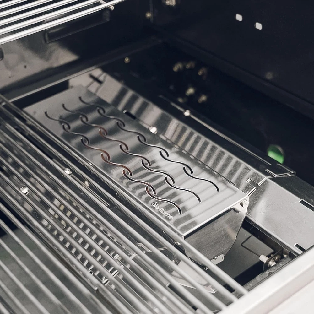 Premium Stainless Steel - Our smoke box for gas grilling sturdy made by premium stainless-steel construction, ensure rust-proof, prevents warping and withstands high grilling temps Larger Smoke Area - The dense wavy vent design provides more smoke and a larger smoked area for the food above. Make the smoked effect of food more uniform and make the smoky flavor more permeable V-Shape with Flat Base Bottom- Large capacity V-shaped design makes it easy to hold more wood chips at once. Bottom with L-bracket, the bbq smoker box is no longer confined to being placed between flame deflector bars, can also be placed stably on the grill grate Hinged Lid for Easy Access - Thanks to the unique hinged design, it allows for easy to add or remove wood chunks, easy to empty, clean, and refill your grill smoking box. (Suggest using heat-resistant gloves for this) Smokey Flavor - Turn a charcoal or gas grill into a smoker. Add some your favorite apple, hickory, mesquite, or wood chips to get that delicious smokey taste for all your BBQ food or meat smoker