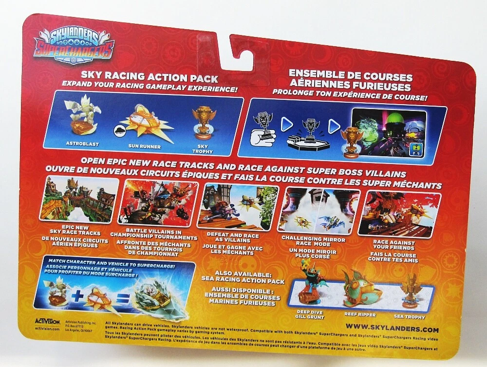 SKYLANDERS Superchargers Sky Racing Action Pack with white version ASTROBLAST game character figure, Sun Runner vehicle and Sky Trophy piece from Activision, brand new in never-opened, factory-sealed package. Astroblast figure is around 2.5" tall with extra weaponry and a vehicle! Package is in great condition. GONE from stores forever! Ages 6+. Ships in a sturdy unmarked cardboard box - no worries! Yes, ALL of our GENUINE AMERICAN Skylanders work with ALL systems that offer the Skylanders games! Most of these Skylanders are compatible with newer or older game versions, but we strongly urge you to do your own research. We are NOT from or associated with any foreign company, we only offer OFFICIALLY LICENSED products sold in the USA! Accept no substitutes, and buy with TOTAL confidence! Ships in a sturdy unmarked cardboard box - no worries! RETURNS: Accepted if item is still in its original packaging. We do not accept items that have been opened and used or examined by the buyer. Feel free to ask questions if you have them - we offer discounts on multiple purchases! CLICK OR TAP HERE TO SEE ALL THE SKYLANDERS ITEMS IN OUR EBAY STORE! LOTS of items that are GONE from stores forever! CLICK OR TAP HERE to visit our eBay Store and save on shipping with ONE INTERNET STOP! With over 1500 different items to choose from, we have something for every kid on your list (even the big ones)! Buy with confidence from us -- we have over 20 years experience selling on eBay and other venues!
