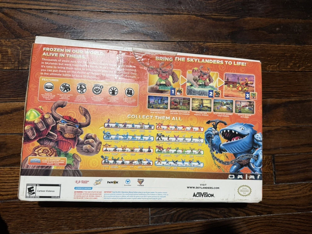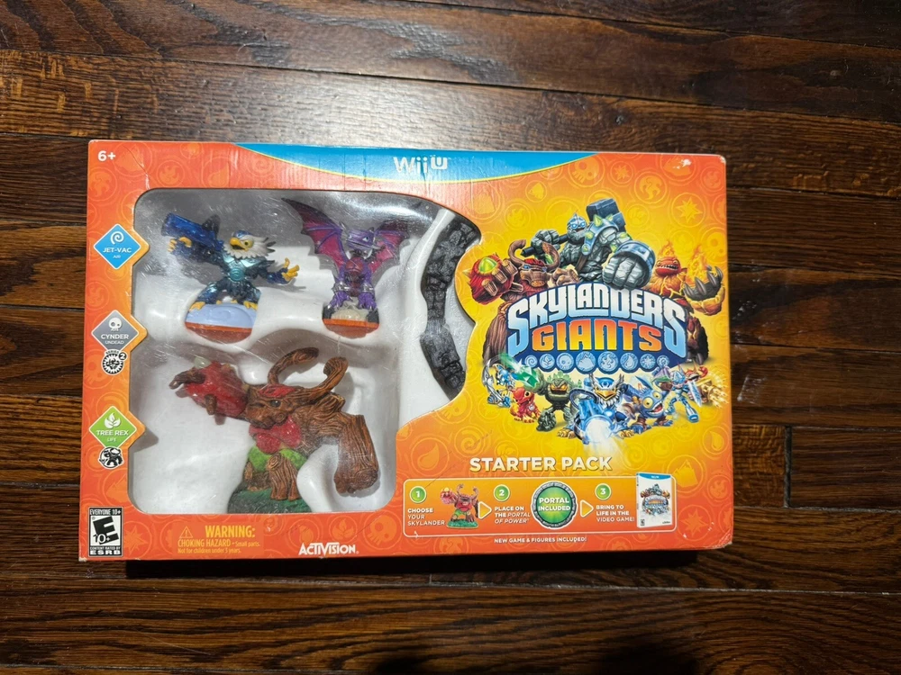 Wii U Skylanders box has been opened but never used. Includes figures and game.