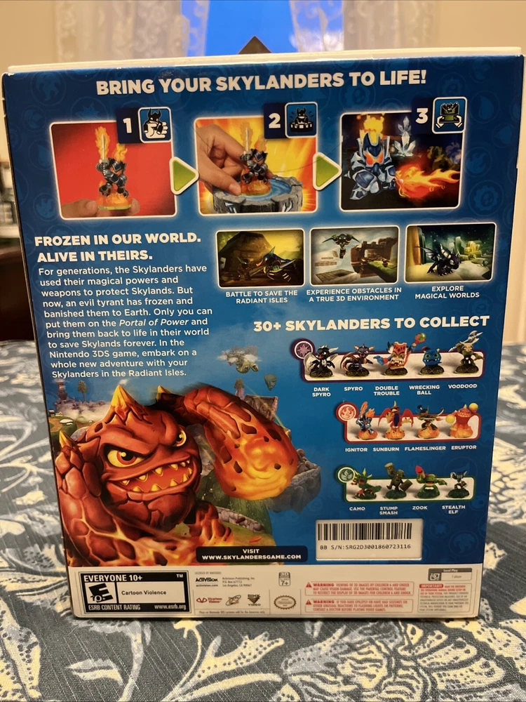 Region Code:NTSC-U/C (US/Canada)Release Year:2011Genre:Action & AdventureUPC:0047875841543gtin13:0047875841543Game Name:Skylanders Spyro's AdventurePlatform:Nintendo 3DSPublisher:ActivisionRating:E10+ (Everyone 10+)Video Game Series:Skylanders Series