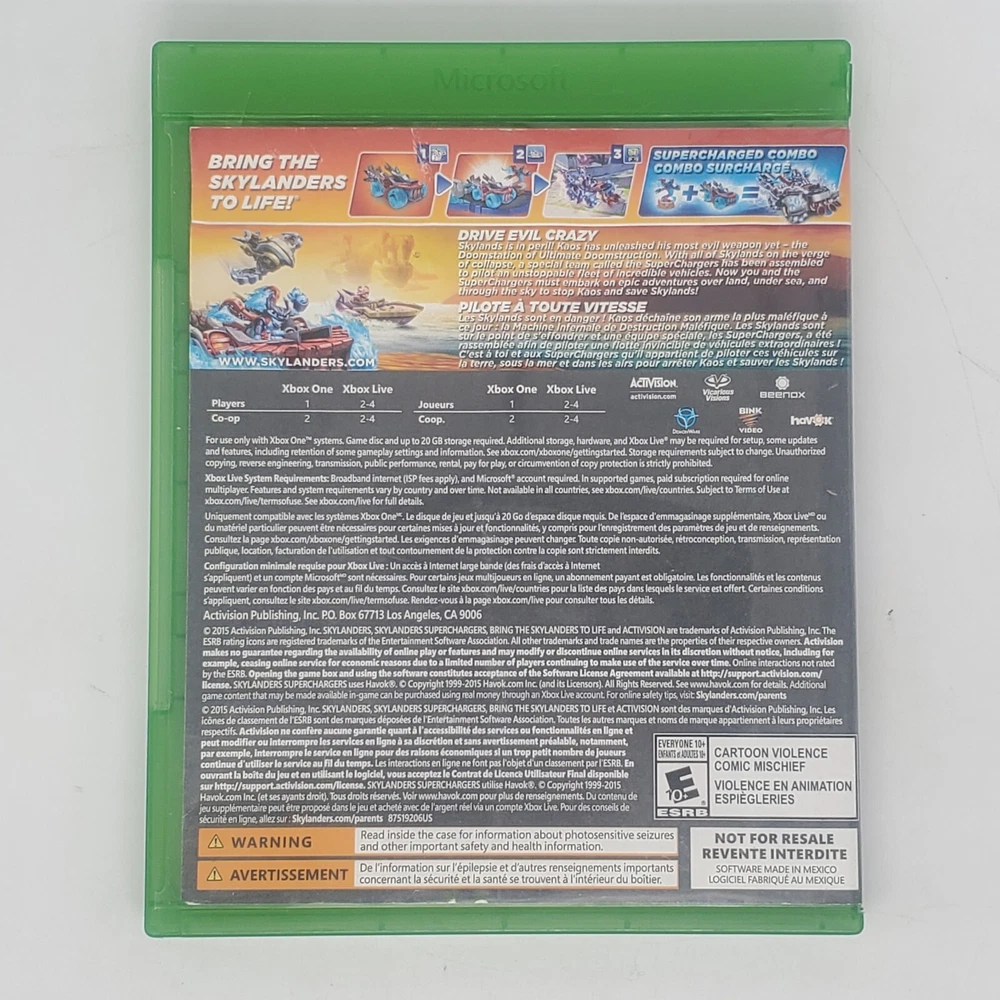 Skylanders: Superchargers Microsoft Xbox One Acceptable Condition Water Damage to card front and back Small scratches on disc Fast Shipping! Shipped by next business day GUARANTEED!