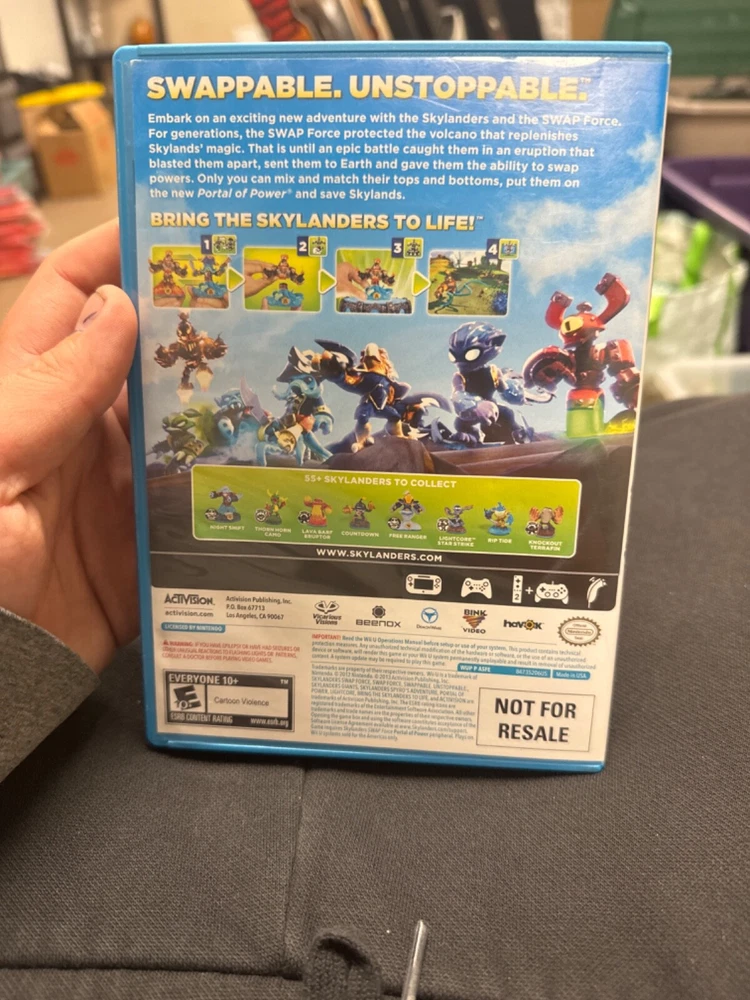 Please Read These Disclaimers - All games are Untested unless said in the title/ description they are tested.if you need anything tested before you buy please ask before hand. i will not be accepting returns for items that do not work, if you?re looking for a 100% guarantee working item please go and pay a premium on a different listing . i do not have time to be testing everything. Again buy at your own risk ! 2nd Disclaimer : All items are pre owned unless stated (Brand New) my definition of like new, very good , good , acceptable is different than most peoples if you need more pictures of a item please just ask, if a item states like new and you clearly see a defect in the picture do not think you can buy it and when you have buyers remorse or you didn?t make a informative purchase just set up a item not as described claim. this will not work and i will do everything in my power to not give these type of people refunds. The only refunds i will be giving out is if you ship the item to me on your own dime and i will still be not be taking off the original shipping costs. Thank you for reading my disclaimers . any questions about that or the item you?re looking at feel free to message me ! Immerse yourself in the world of Skylanders with Swap Force for Nintendo Wii U. This action-packed game features martial arts battles and adventure in a fun-filled game. The game includes a manual and has been tested to ensure fast and reliable gameplay. Join the battle and explore the world of Skylanders with your favorite characters. This game is perfect for everyone 10 and up, and is part of the popular Skylanders video game series. Don't miss out on this opportunity to add Swap Force to your collection.