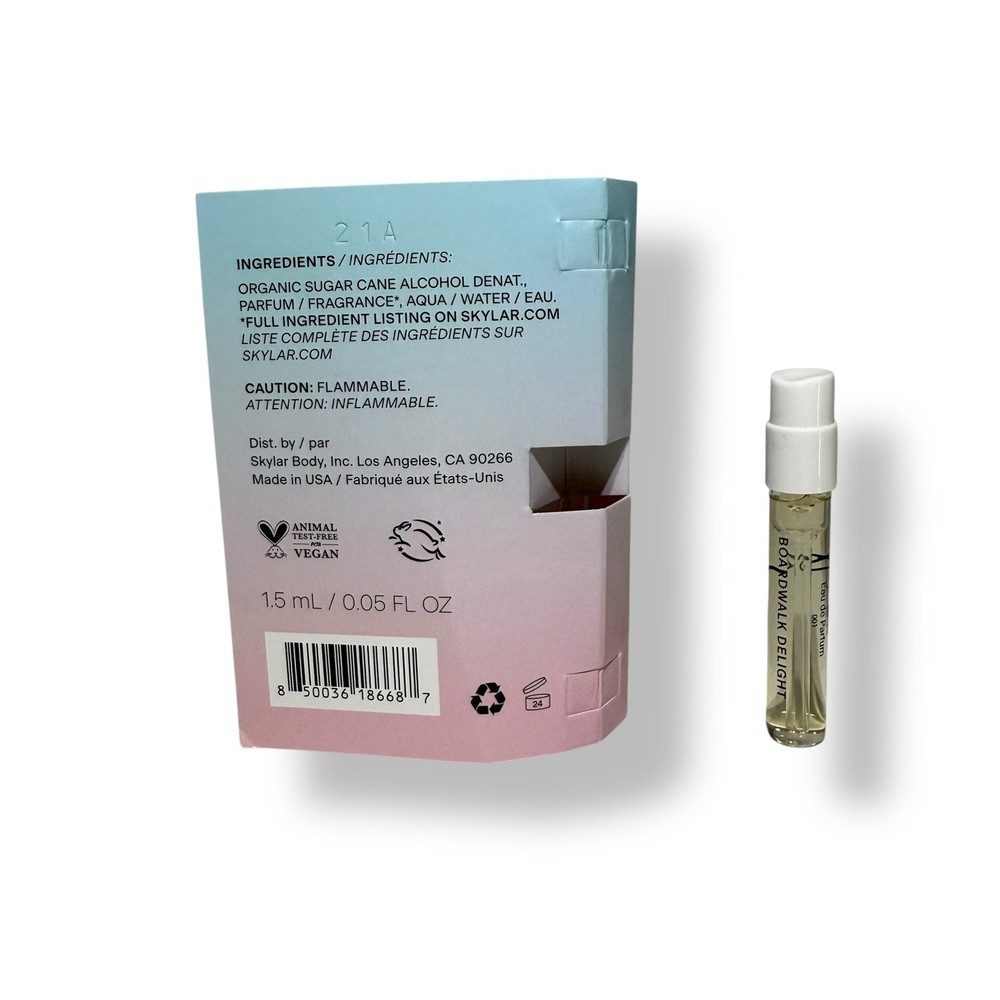 Product Skylar Boardwalk Delight EDP Eau de Parfum Spray Sample Card w Vial New and unused - Size - 1.5mL/.05 oz About Us: All items are new and authentic. Please message us with any questions you have! We are happy to help.