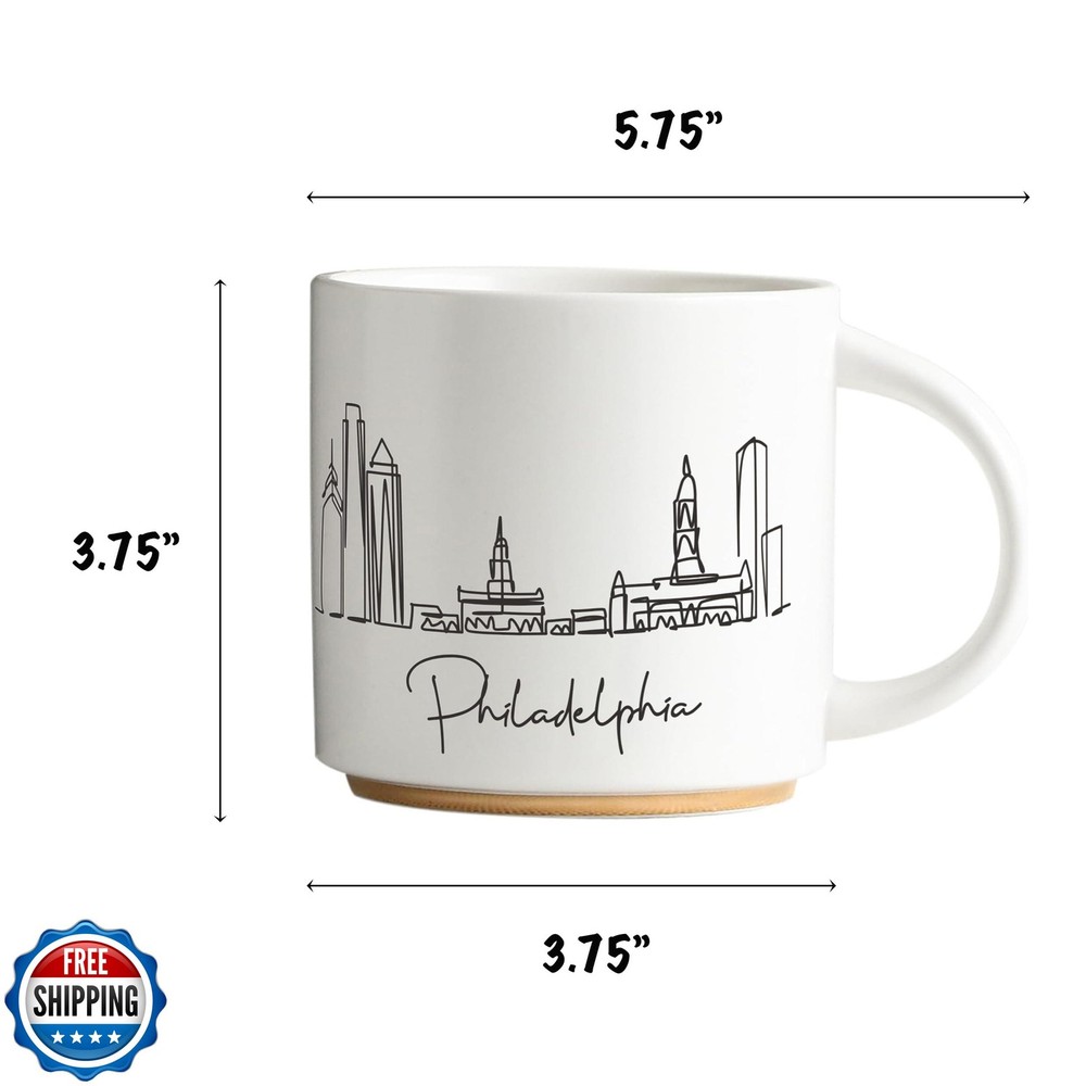 COLLECTIVE HOME - Skyline Ceramic Mug, Coffee Cup, Landscape Cups, 15 oz Tea Mugs, Elegant Personalized Mug with Gift Box, Luxurious Cups for Office and Home (Philadelphia) Features 【Generous Size for Your Favorite Beverages】With a 15oz capacity and measuring 3.75 inches in diameter and 3.75 inches in height, our stylish mugs are perfect for savoring a hearty serving of your preferred hot or cold drink. 【American City Skyline Collection】Each mug in our series showcases hand-drawn illustrations of iconic American city skylines, bringing the essence of these metropolises right to your coffee table. 【Gift of Urban Elegance】 Packaged with care, these skyline silhouette mugs make for a thoughtful and sophisticated gift for friends, family, or colleagues who cherish urban aesthetics or enjoy collecting city-themed memorabilia. 【Artisanal Touch】 Celebrate architectural beauty with every sip; these ceramic mugs are adorned with simplistic yet captivating sketches of city landmarks, offering an artisanal touch to your morning routine. 【DO NOT MICROWAVE!!!】Due to the inclusion of real gold elements in the gold ring at the base of each mug, these skyline cups are not microwave safe. Please refrain from microwaving to preserve their beauty and integrity. 【Buy It at Ease】If you have any questions, don’t worry, feel free to contact us, we will respond within 24 hours! Shipping Free & Fast Shipping: We offer free shipping to most of the USA with a normal delivery time of 3-7 days. However, due to the current situation, additional delivery time (up to 3 weeks) may be required for some items. Alternative Carriers: We may use alternative carriers (e.g., USPS, FedEx, UPS) to ensure your package arrives safely and on time. Due to the use of multiple carriers, we are unable to provide a tracking number automatically. Handling Time: Orders are processed and shipped within 1-2 business days of receiving cleared payment. Shipping Restrictions: Shipping to Alaska, Hawaii, Puerto Rico, Guam, and other US territories may incur shipping charges or delivery restrictions. Please contact us before ordering, or your order can be refunded/cancelled. State Restrictions: Certain items may not be shipped to California due to state regulations. Contact for Tracking Updates: If you require tracking updates or have any concerns about the delivery of your order, please feel free to contact us, and we will be happy to assist you. Return Policy 30-Day Hassle-Free Returns: If you are not completely satisfied with your purchase, you can return the item for free within 30 days of receiving it for a full refund or exchange. Easy Return Process: Contact us, and we will provide you with a prepaid return shipping label and detailed instructions. No Restocking Fee: There are no restocking fees for returns. However, the buyer is responsible for return shipping costs if the return is not due to a seller"s error. Refund Processing: Refunds will be processed within 1 business day of receiving the returned item in its original condition. Feedback Your feedback is extremely important to us. We strive to provide the best products and customer service possible. If you are satisfied with your purchase, please take a moment to leave us a positive review. If you have any concerns or issues with your order, please contact us before leaving negative feedback. We are committed to resolving any problems and ensuring your satisfaction. Contact Us If you have any questions or concerns, please feel free to reach out to our customer support team. You can contact us through the eBay messaging system. We are available Monday to Friday, 9:00 am to 5:00 pm EST, and we will do our best to respond to your inquiry within 24 hours. Thank you for supporting our small family business!